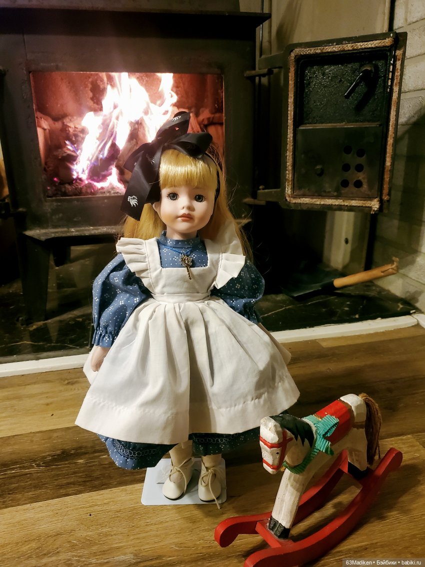 Я так очаровалась своей новой Алисой, что всё утро следующего дня снимала её на фоне искусственного камина. ( А точнее, его изображения на экране. )