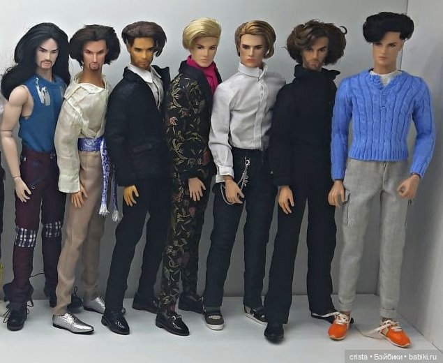У тел 14 точек артикуляции, сгиб аются шарниры где-то на 90 градусов. Голова именно у парней практически не кивает или кивает слабо. Телосложение среднее, если говорить об основной линейке. Но есть отдельная линейка — «Монархи» — они чуть выше и более худые.