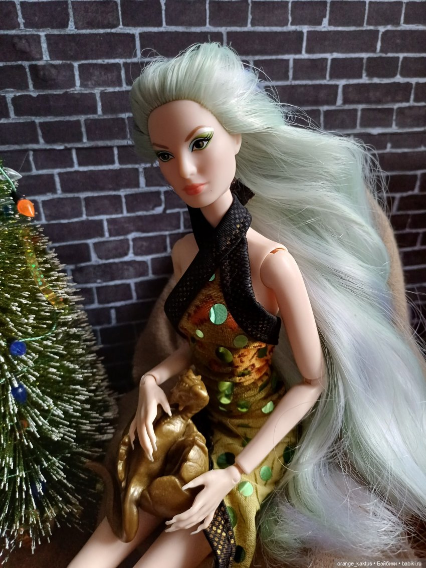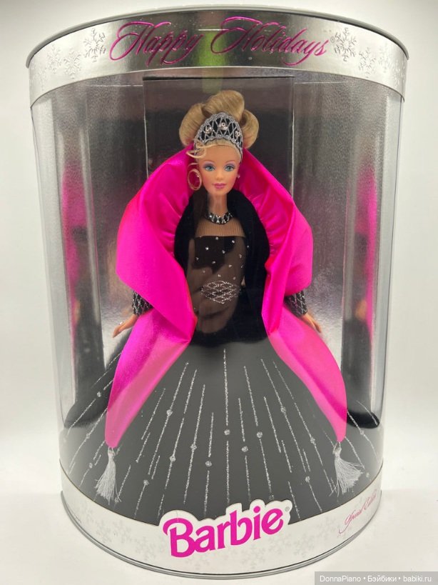 Вот специально её нашла, Barbie Happy Holidays 1998. На мой вкус, обычная блондинка, и смотрится как кукла куклой, больше похожа на витринный экспонат. Не моё совершенно, поэтому я даже не мечтала, что такое платье можно выловить само по себе))