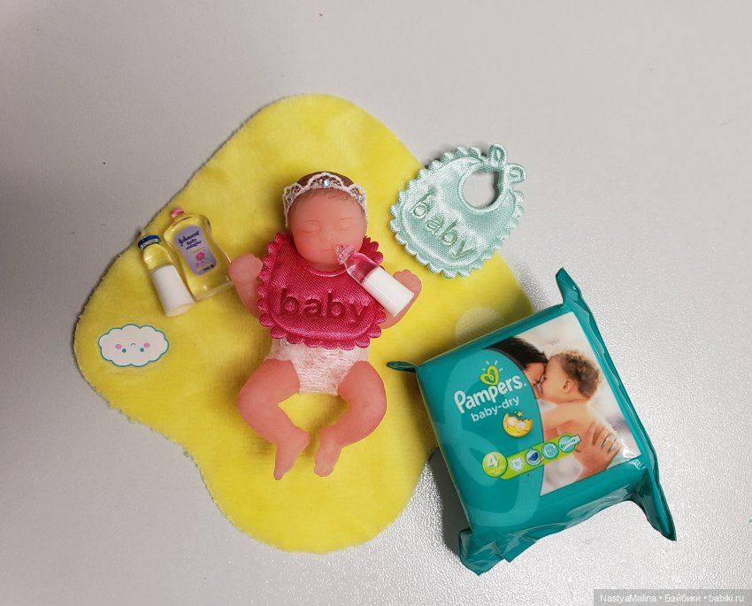 ( мне сегодня с алика приехали микро бутылочки с нагрудниками и пачка памперсов, правда памперсы просто бутафория, но смотрятся реалистично) теперь можно будет наконец то покормить малышку