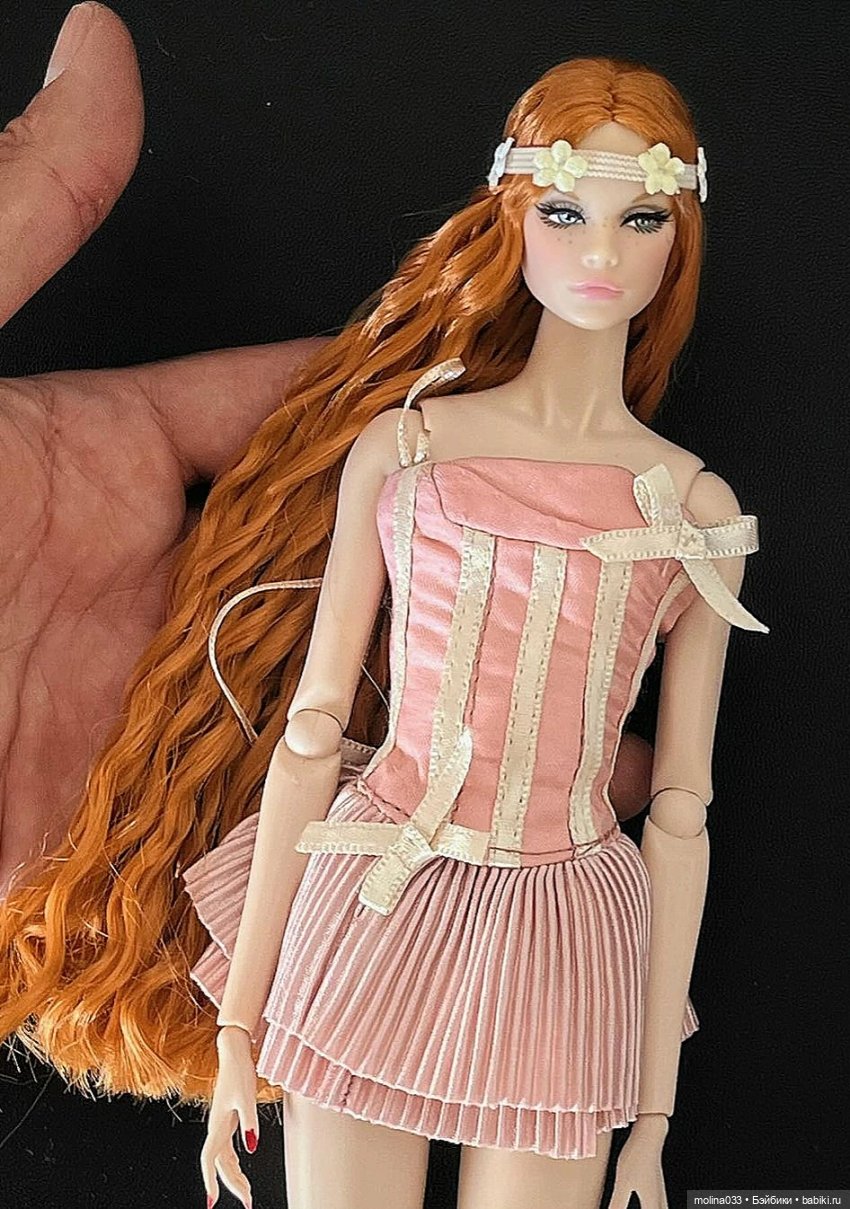 Прическа точно Гэтсби стайл — они на пару с Навией могут зажигать теперь))) что ещё прикольно — на нее налезают два из трёх париков для Барби — прямо поверх ее волос, ТК головка очень миниатюрная — обязательно покажу, но там надо подобрать одежду)