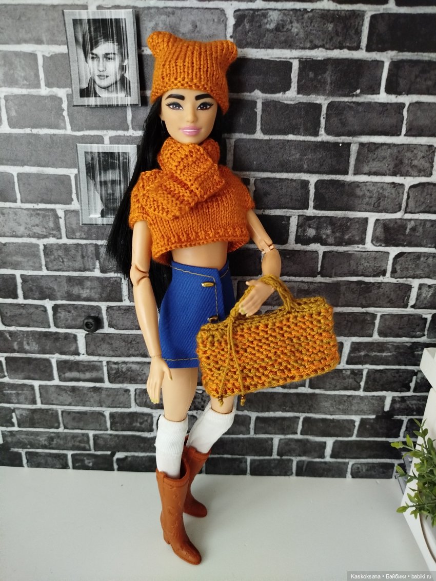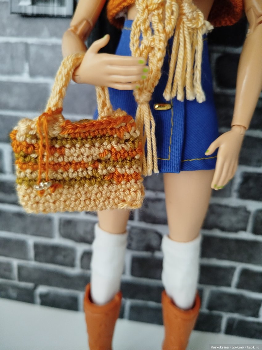 У меня микс, фото один в один не планировалось. Во-первых, мохнатый зверь — это шапка, и количество ценного меха изначально было ограничено. Во-вторых, время. Связать сумку большего размера я не успевала, хотя и начала. Заготовка лежит, может, и довяжу.