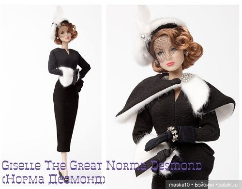 В оф. описании этой кукольной персоны вкратце говорилось, что IT, в сотрудничестве с корпорацией Paramount Pictures, используя слепок головы Жизели на теле Nu.Face, представило коллекционную куклу, вдохновленную культовым персонажем Нормы Десмонд из фильма «Бульвар Сансет. Сам фильм «Бульвар Сансет» был номинирован на одиннадцать премий «Оскар»® и выиграл три. Он признан классикой, часто упоминается как один из величайших фильмов американского кинематографа…