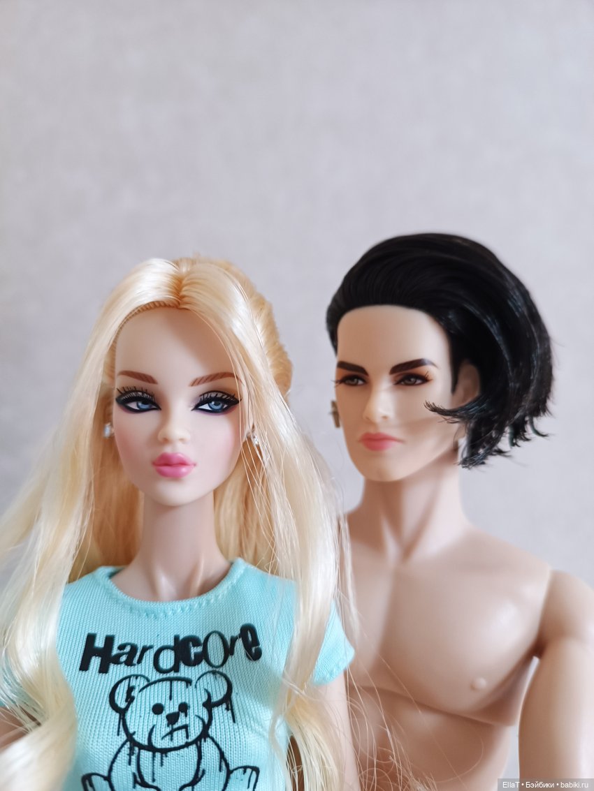 Причесала пацанчика, серёжку надела, хочу ещё ногти ему накрасить — или в чёрный, или в ярко красный цвет… И джинсы хочу, джинсы наверное это моя мечта… для всех куклен…