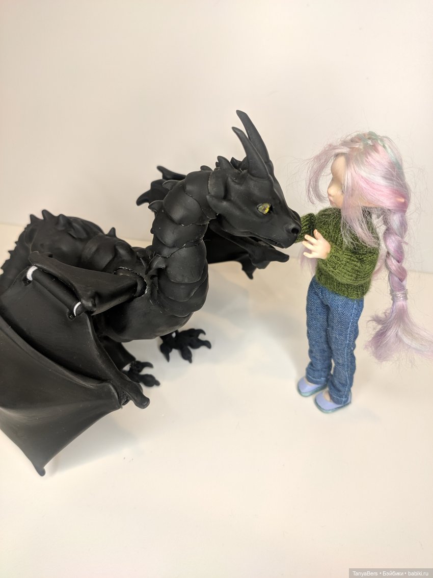 Милая малышка тут же опустилась на колени и стала гладить зелёную шипастую шкуру: