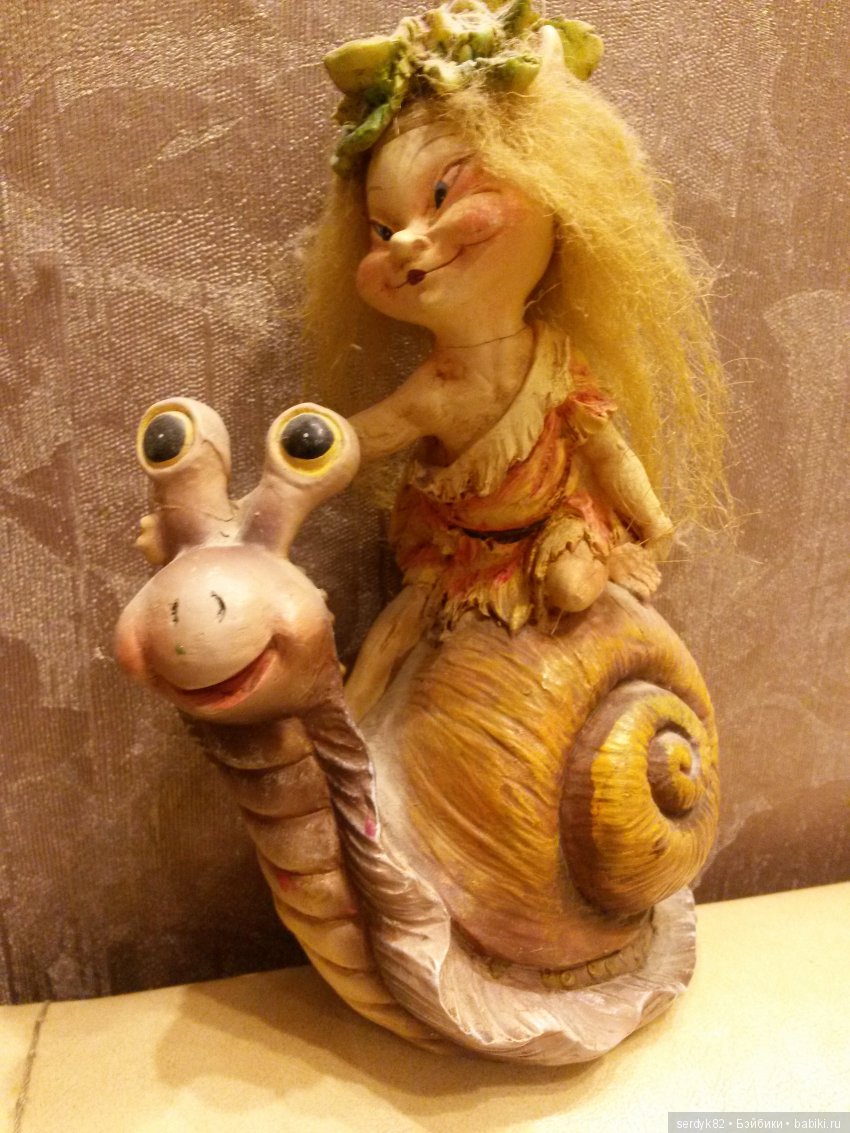 Здравствуйте, мои односайтовцы-бэйбиковцы! Познакомьтесь с моей авторской игрушкой-улиточкой. Её размеры — длина 15 см, высота 11-12 см. Сделана она из полистирола по моей авторской технологии. Это эквивалент открытки к подарку на День рождения дочке. Подумала-подумала, что можно сделать для биолога? Фигурку животного. И желательно весёлого. Что из этого вышло — показываю: