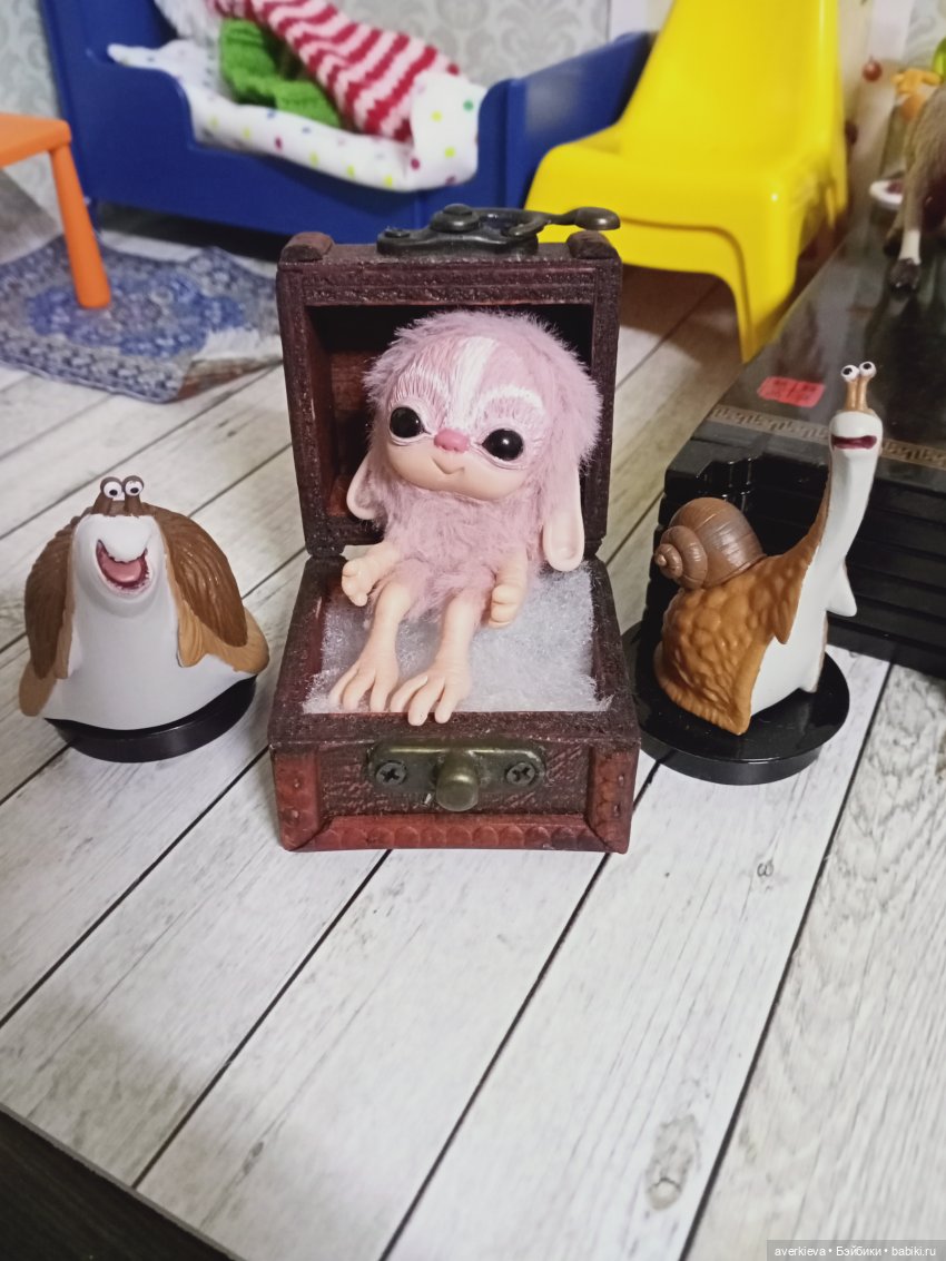 Здравствуйте, здравствуйте, здравствуйте!!! Всем крепчайшего здоровья! Сегодня Ирма напросилась со мной на работу. С вечера нарядилась и забралась в сумку. Ну невозможно отказать такой харизматичной даме! Ирма поехала не зря.Сопровождала меня на почту. Сегодня получили две посылочки: одежду для куколок и самую самую посылочку, которую я ждала)))) Это подарок от мастера Bernkastel. Она делает потрясающих существ!( Не всем понятных, но не оставляющих равнодушными никого) Ко мне приехала Хокко Мидуфи с пожеланиями и посылом здоровья, и как мой оберег))) Благодарю от души за эту милоту! У автора для каждой зверюшки своя история.Как нибудь я расскажу вам кто такая Мидуфи. А пока приглашаю посмотреть фото.