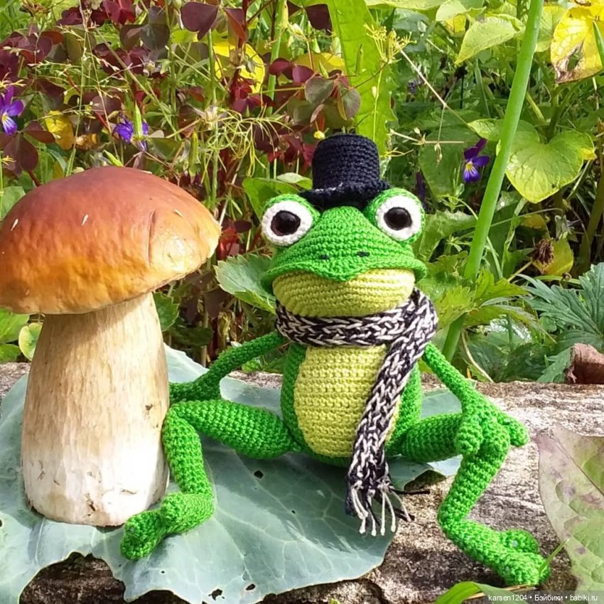 И вот вчера получив посылочку, открывала ее дрожа от нетерпения. Из коробочки появился этакий импозантный Жаб)))Назвался Ляписом Никифоровичем Жабецким( ударение на последний слог)