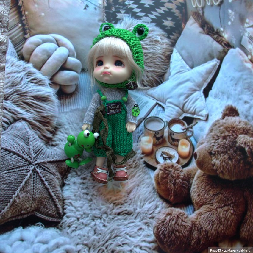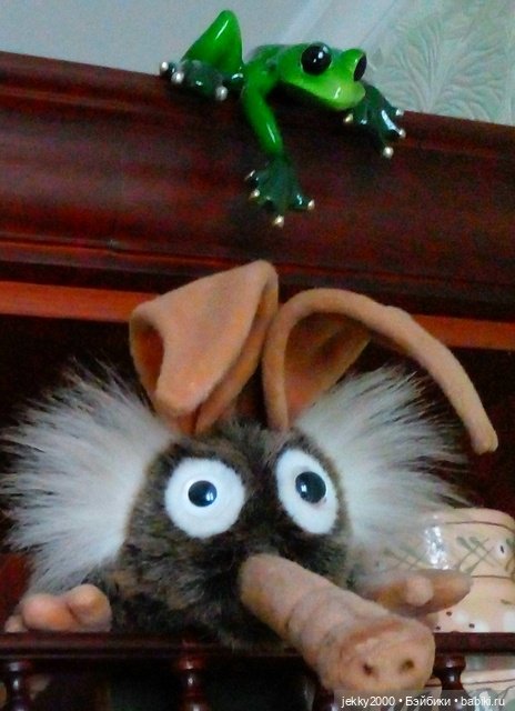 У меня есть вот такой лягух — сидит на шкафчике и пытается Тролля за ухо схватить )))