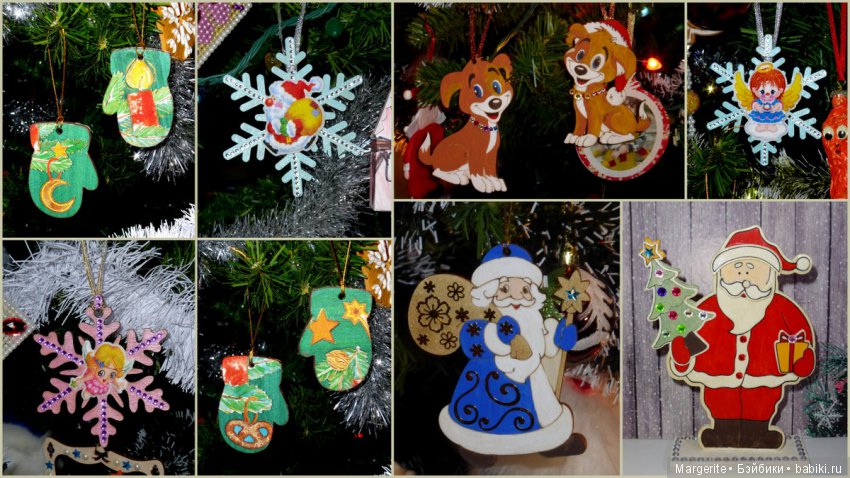 Я настучала по шее своему трудоголизму и категорически запретила себе думать о работе с 30 декабря по 2 января :) Но врожденное шило в «том самом месте» покоя не давало, поэтому я от души развлеклась раскрашиванием и декорированием фанерных основ. И если в декабре я добиралась до красок урывками между делами, то уж на Новый год позволила себе не стесняться :) Одна проблема: места на елке и под елкой уже катастрофически не хватает :)