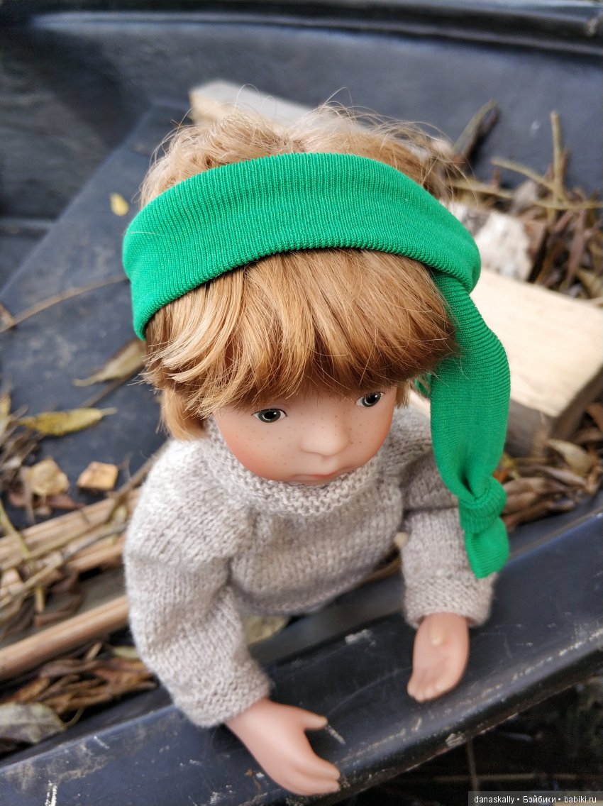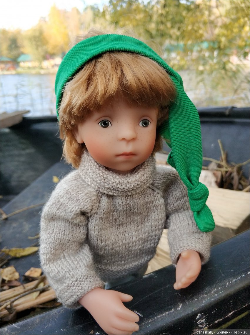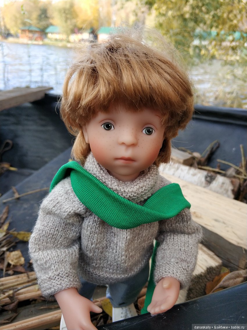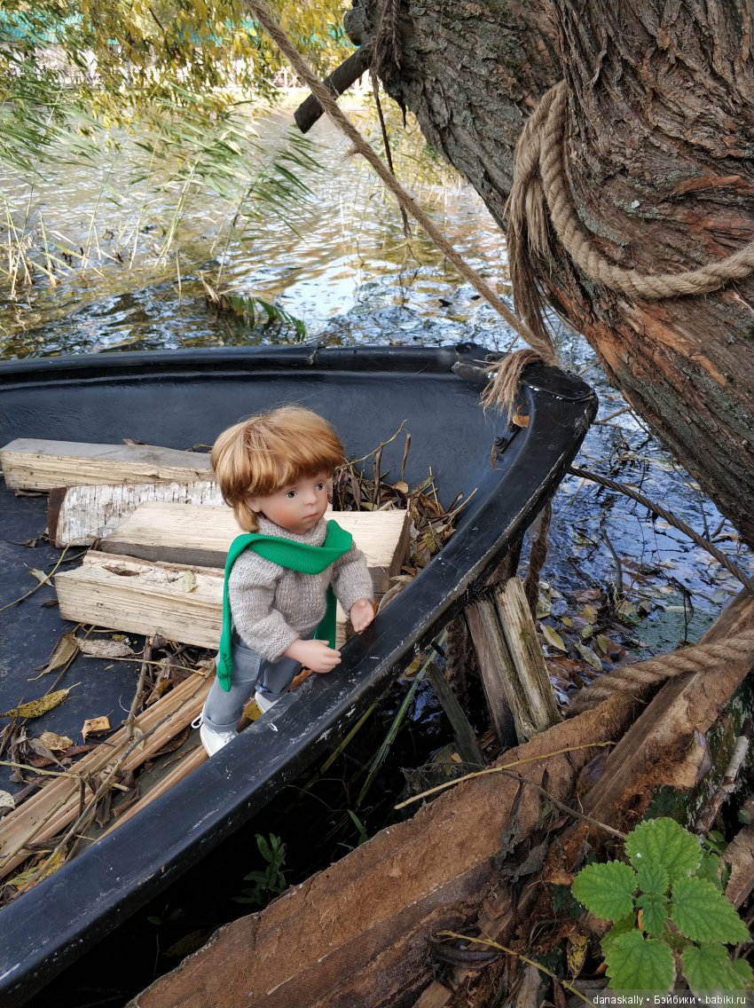 Мысли Закари: " Ничего себе лужа, да это целый пруд для корабликов -листочков ". Верный друг мишка Максик тоже надел кофту :).