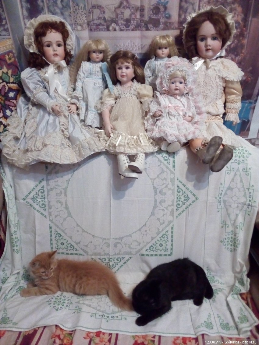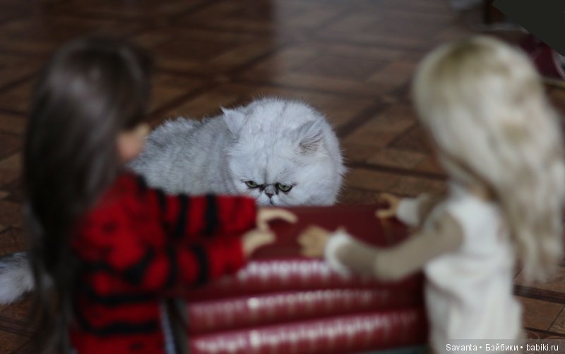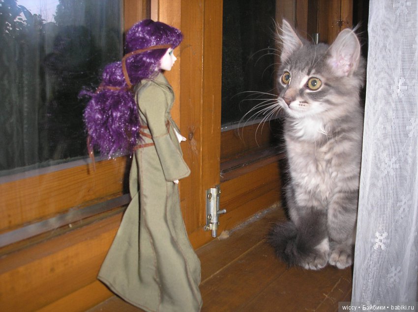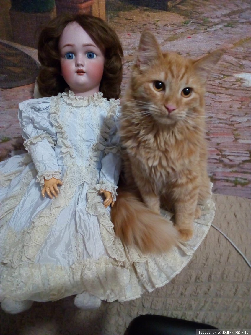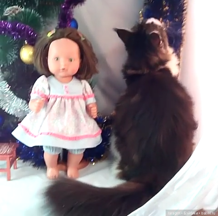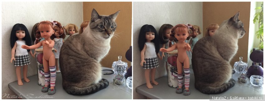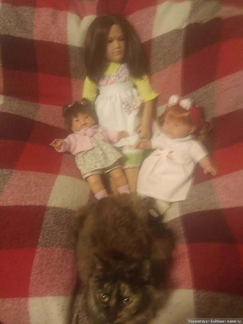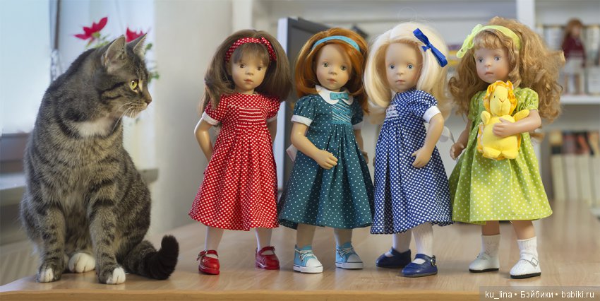 Наш кот скромняга. Но к куклам проявляет интерес. На первый план не вылез, но поприсутствовал.