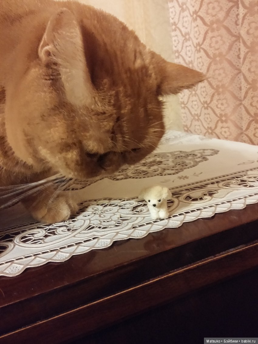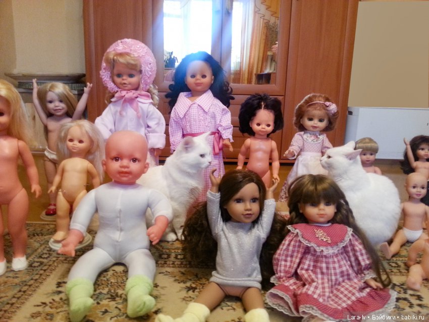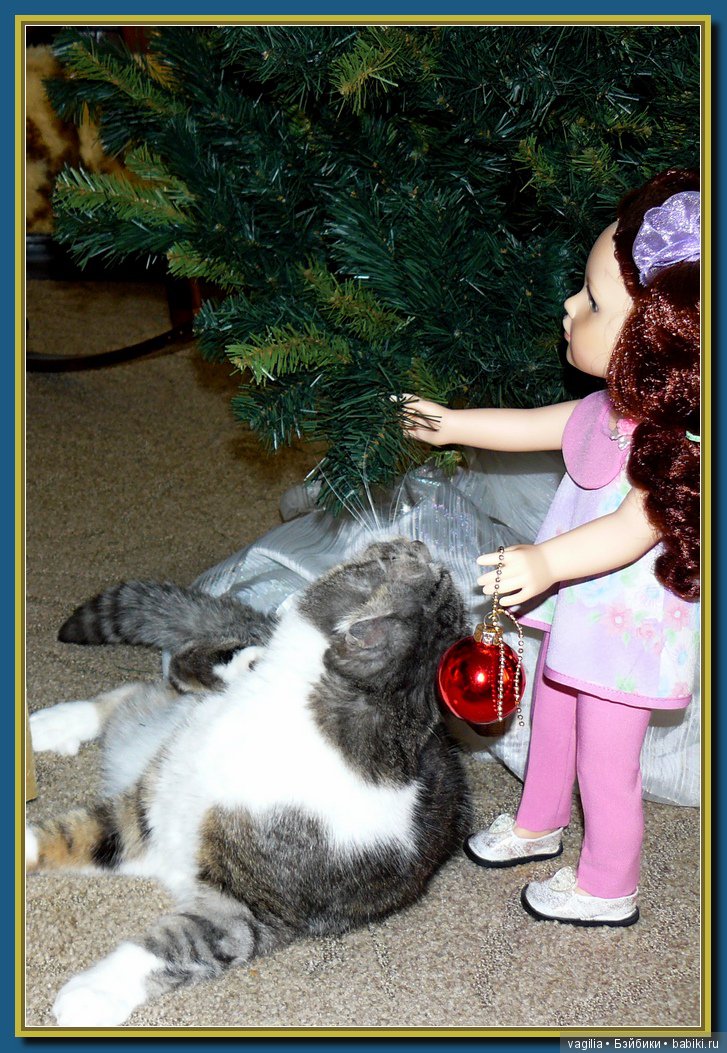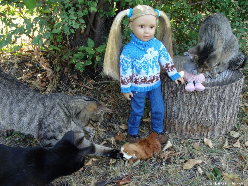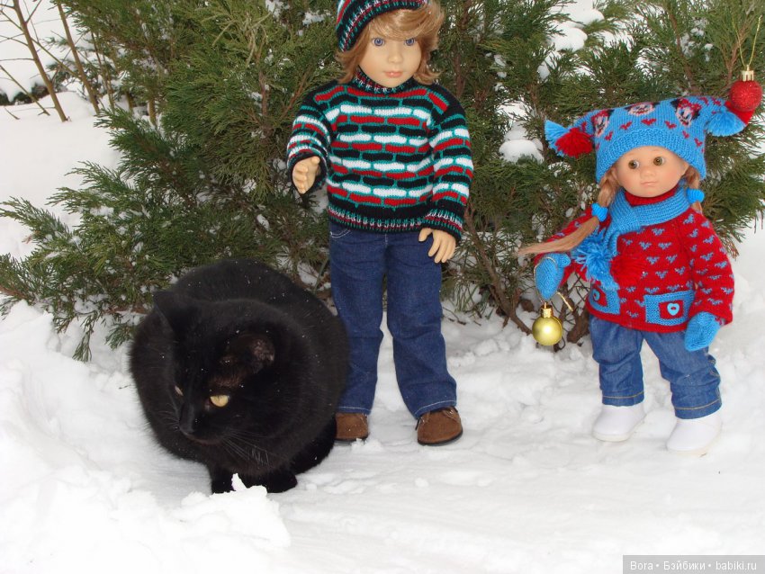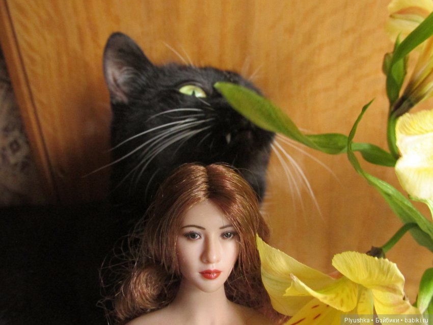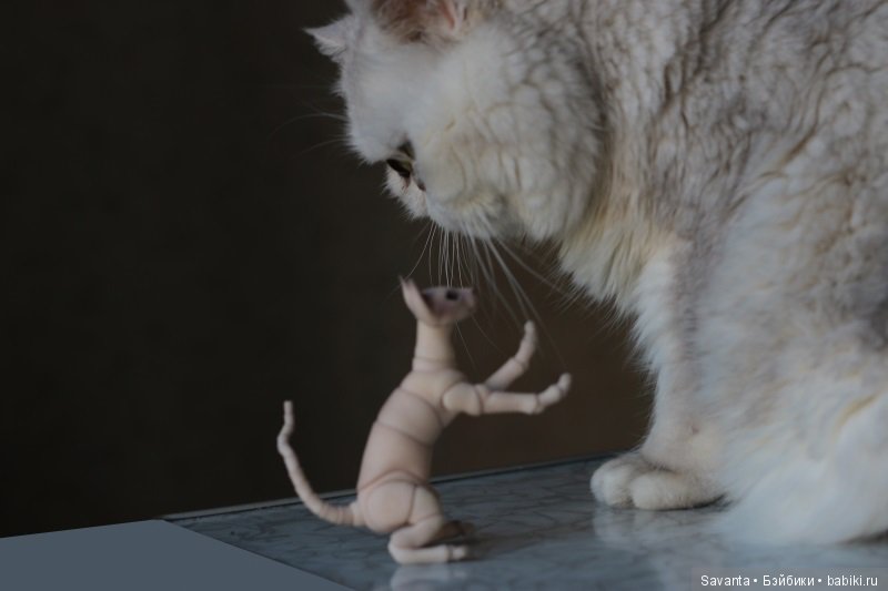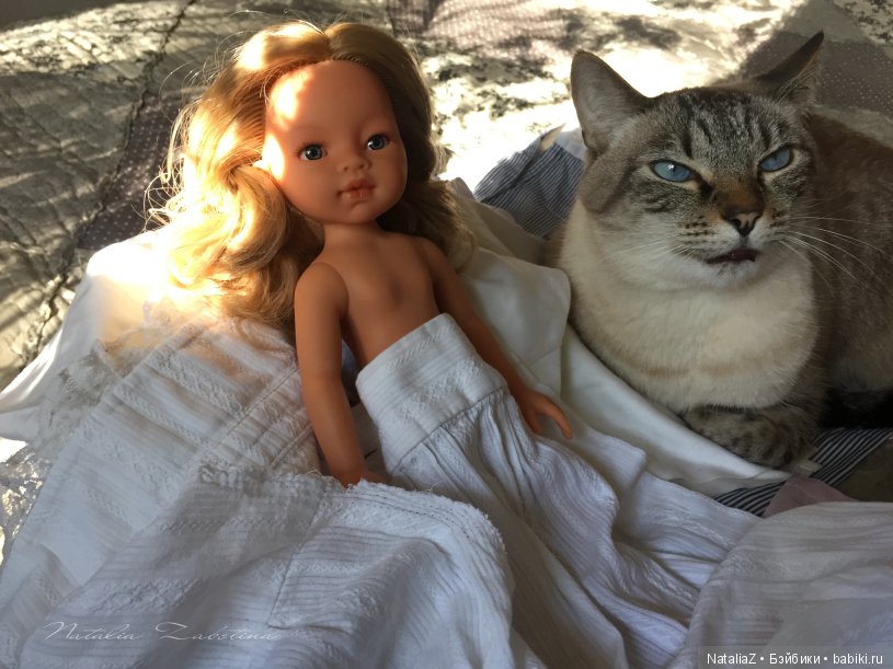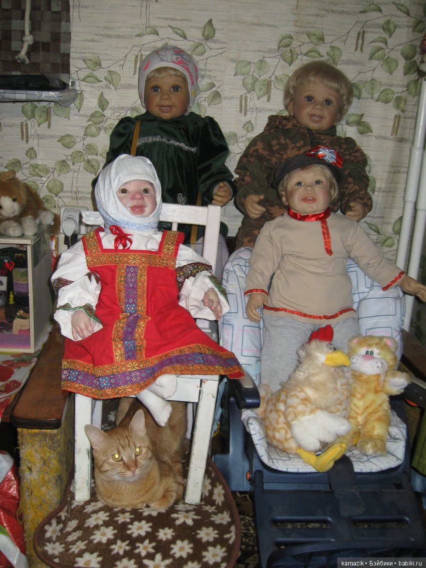 Наш кот скромняга. Но к куклам проявляет интерес. На первый план не вылез, но поприсутствовал.