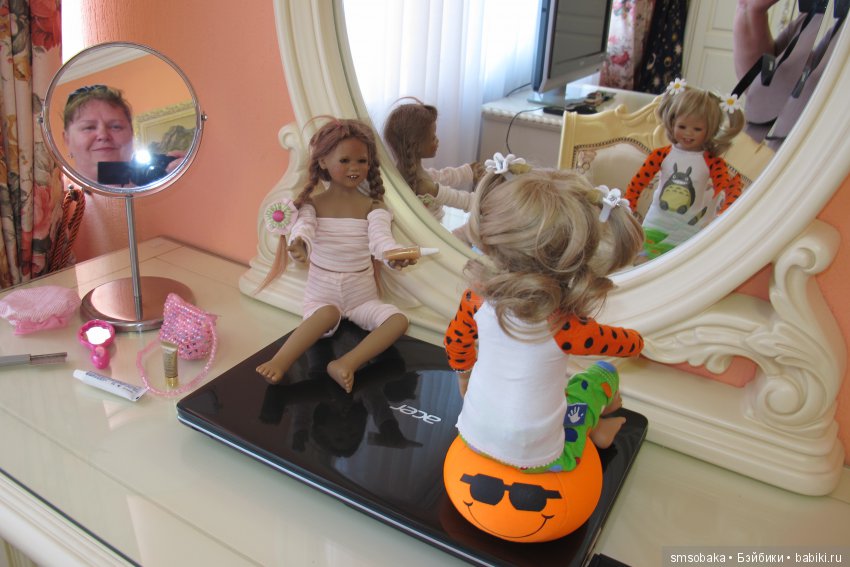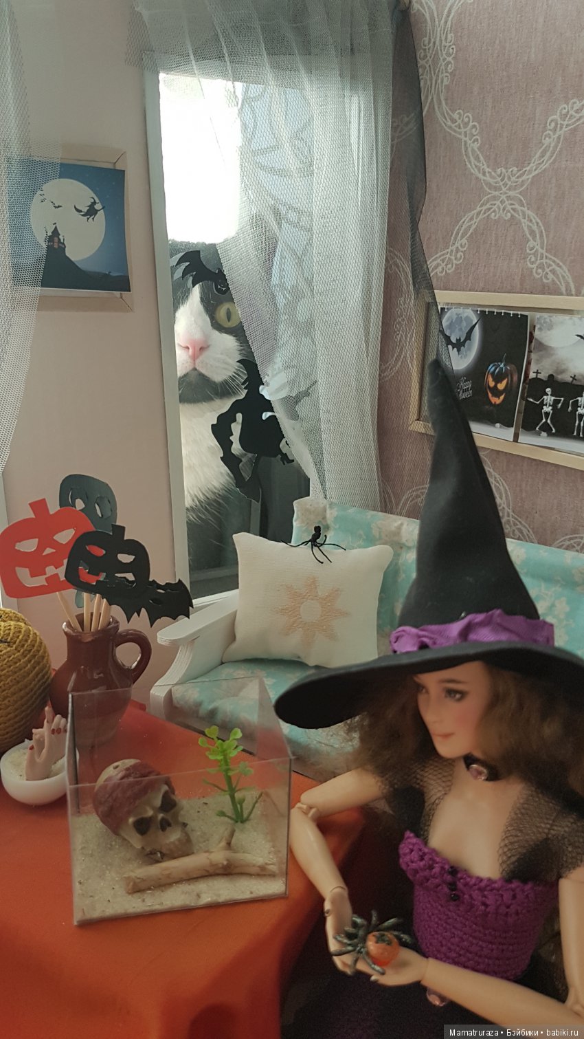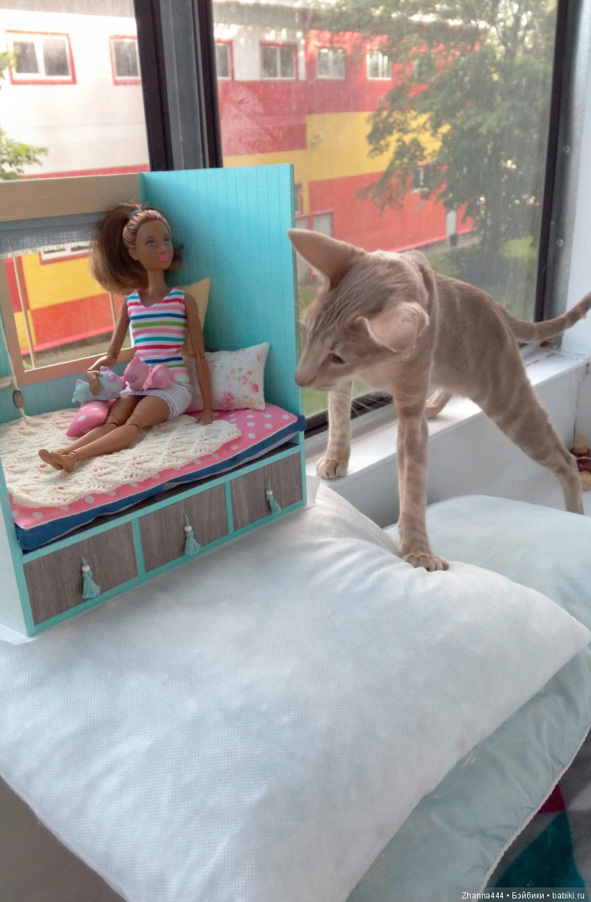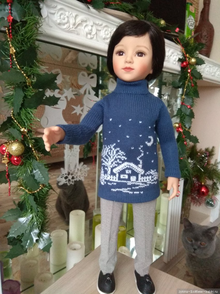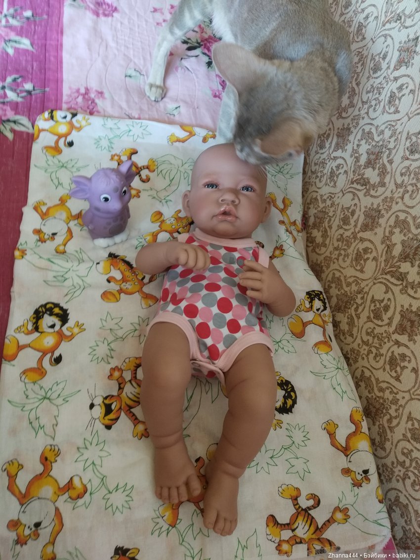 Наш кот скромняга. Но к куклам проявляет интерес. На первый план не вылез, но поприсутствовал.