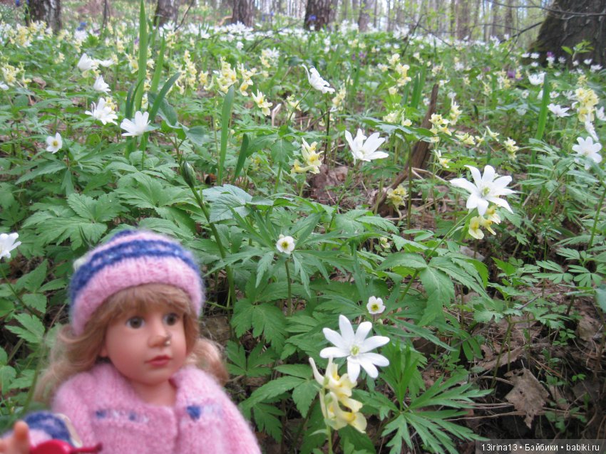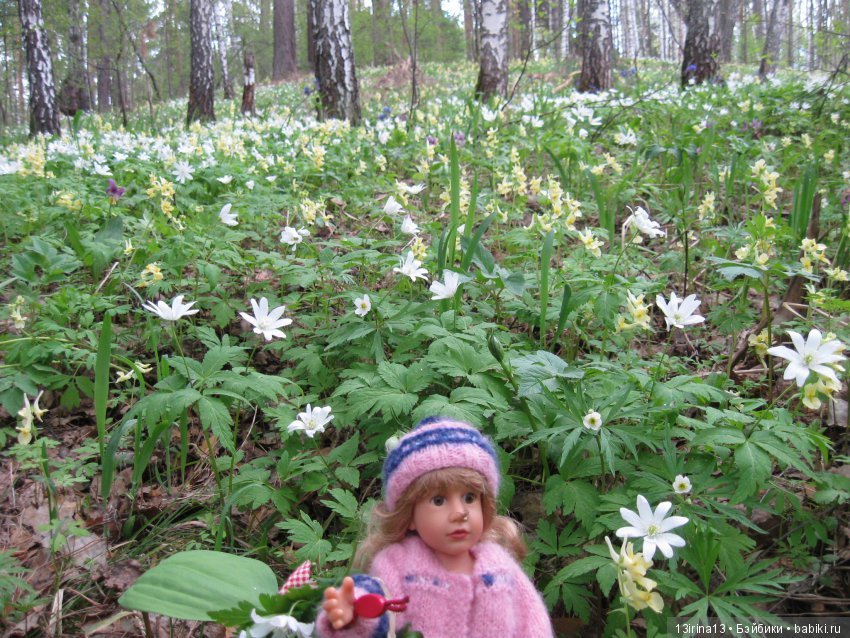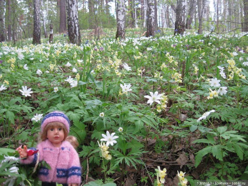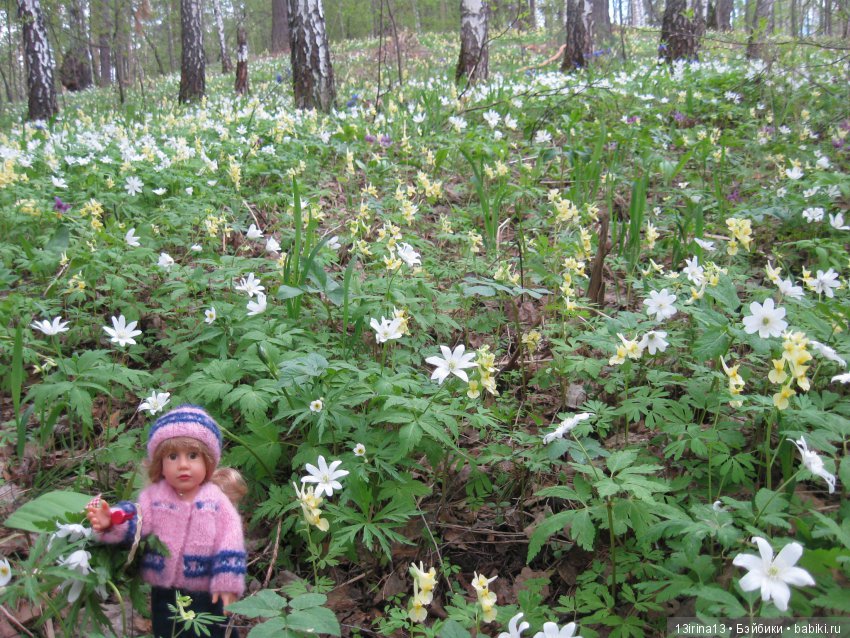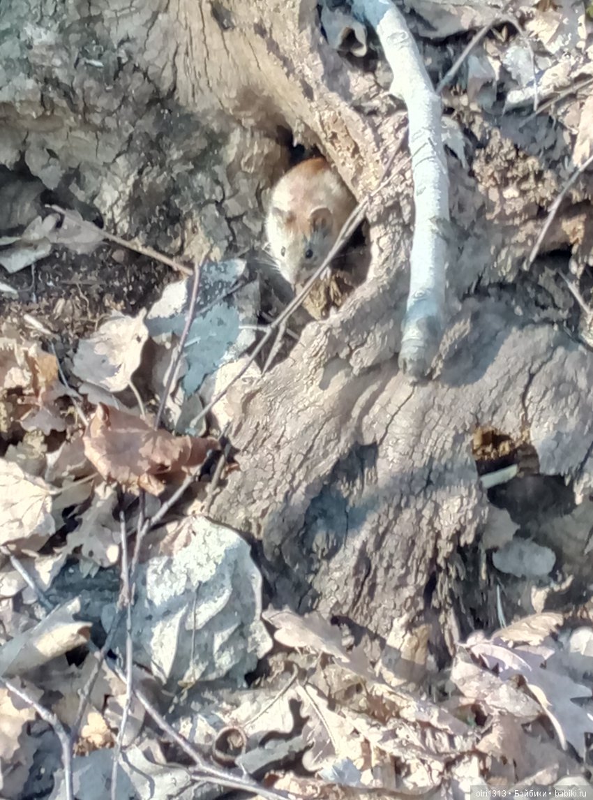 Вчера, гуляя по весеннему лесу, увидели мышку, которая вылезла из своей норки и сидела грелась на солнышке. Но куколка в кадр не успела попасть, побоялась спугнуть мышку.
