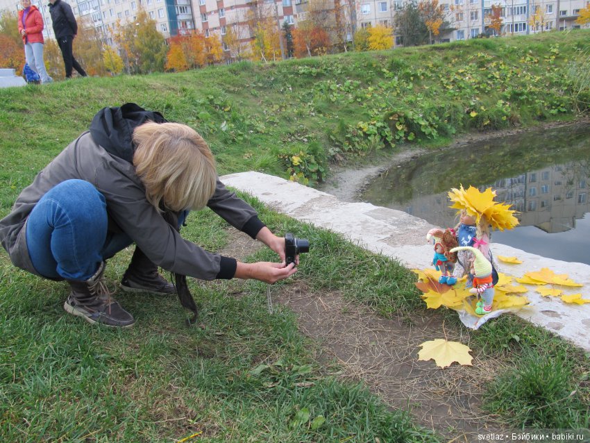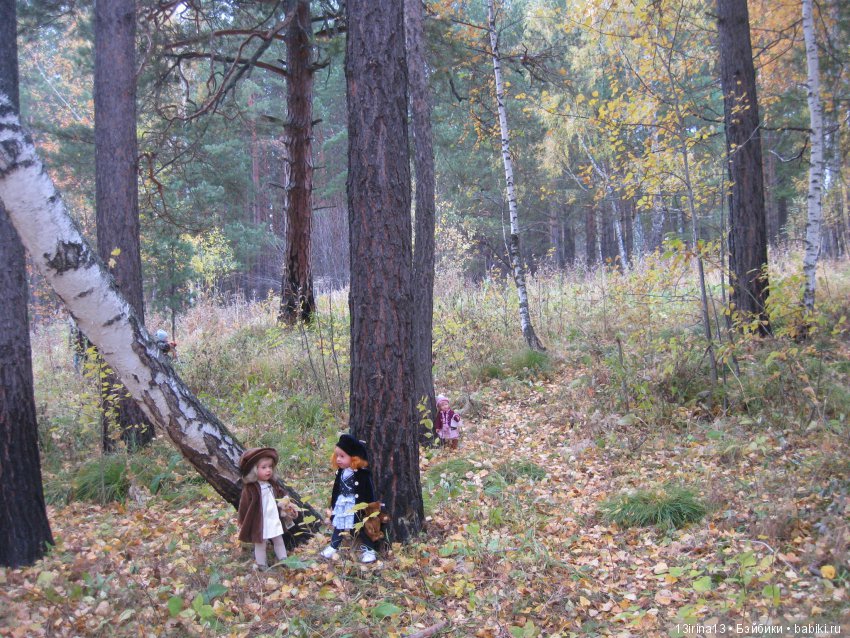 Расставляла кукол, выбирала лучшее расстояние для удачных кадров, лес практически одинокий, никого вокруг…