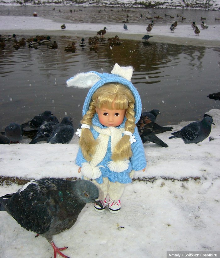 А теперь я расскажу самое забавное — пока я опустившись на уровень куклы, сосредоточенно ее фотографировала, один из голубей,