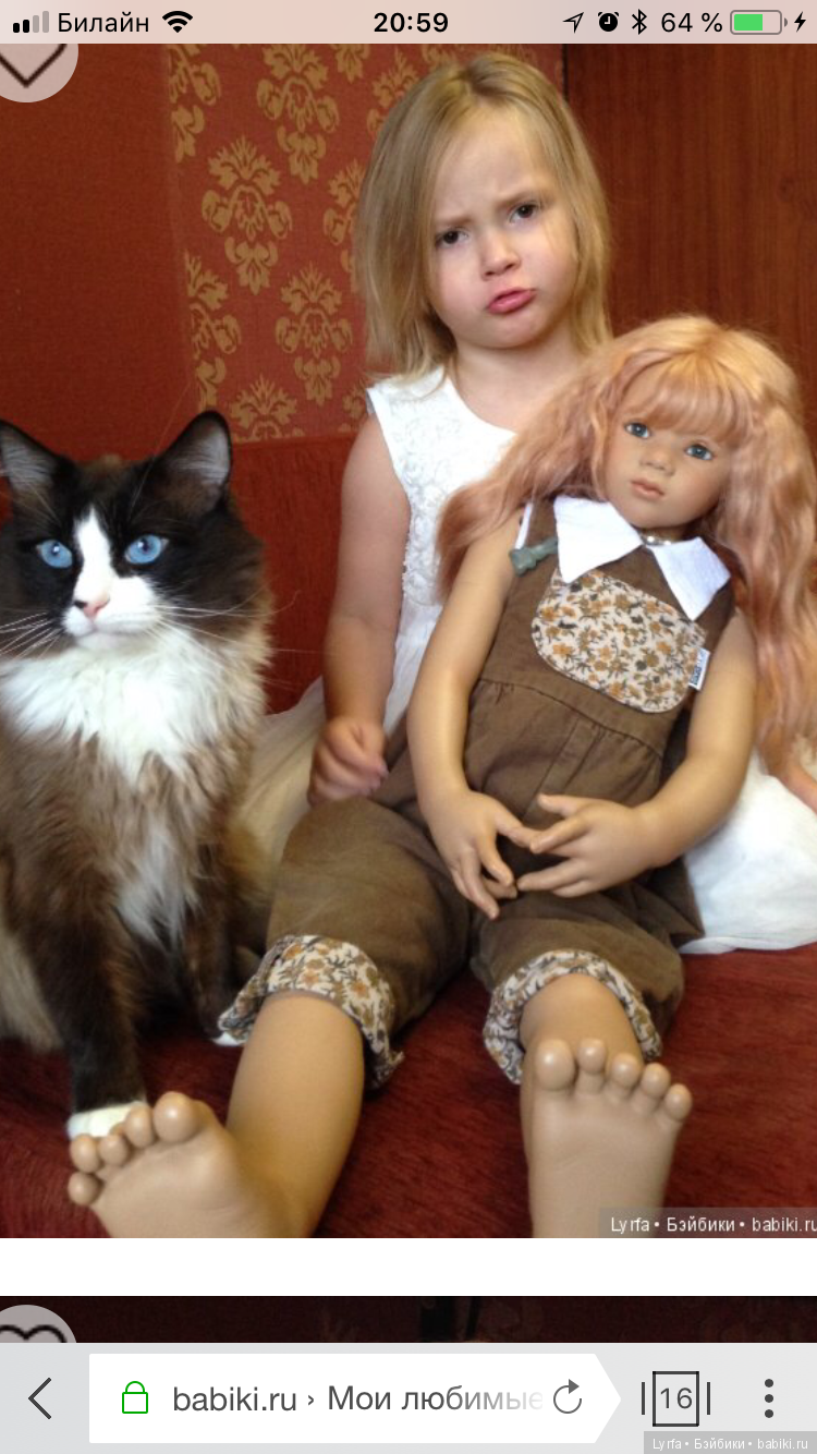 Кукла уже живёт не у меня, жаль. Зато осталась кошка и как говорил Карлсн: «Я же лучше, чем собака»