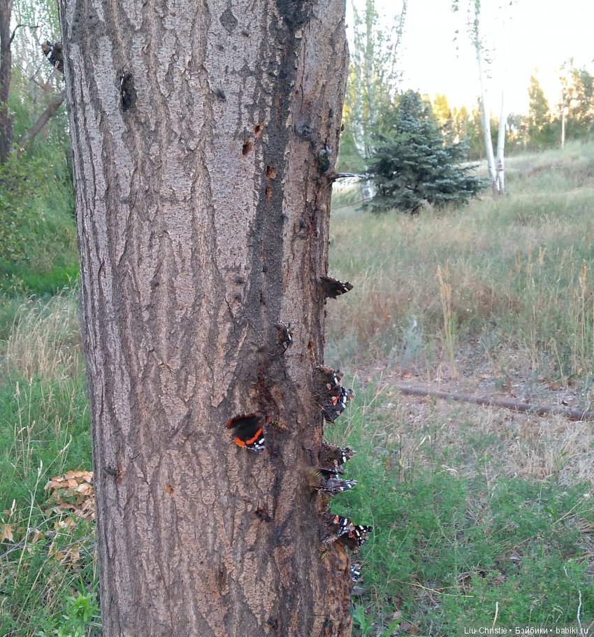 А это фото без куколки. Но очень уж оно необычное. Однажды мы с мужем шли из магазина и на дереве увидели бабочек. Много! Я полезла через траву к дереву, а муж мне кричал: «Не лезь, в траве могут быть клещи!» Но, разве я могла просто стоять?