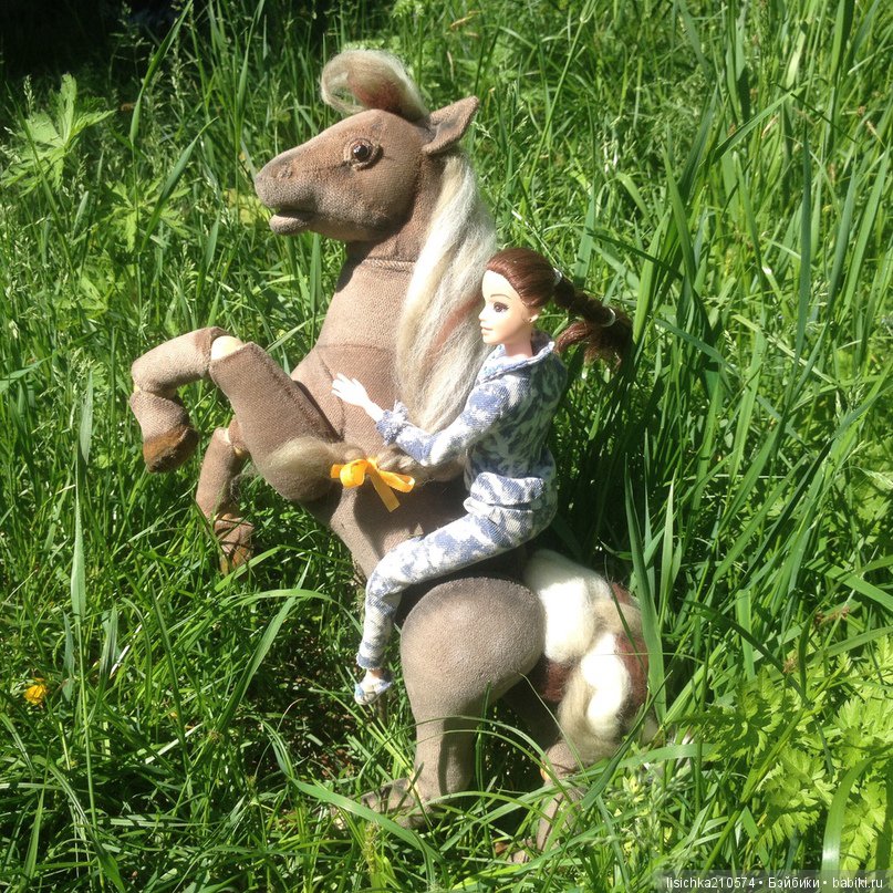 У меня три собаки. Я делаю кукол и игрушки, мишки тедди. На фото кукла покупная, но костюм полностью моего изготовления. Лошадка — это моя гордость, моя разработка, выкройка и работа. Пожалуй это главная достопримечательность в нашей деревне)) Фото сделано у меня в огороде!