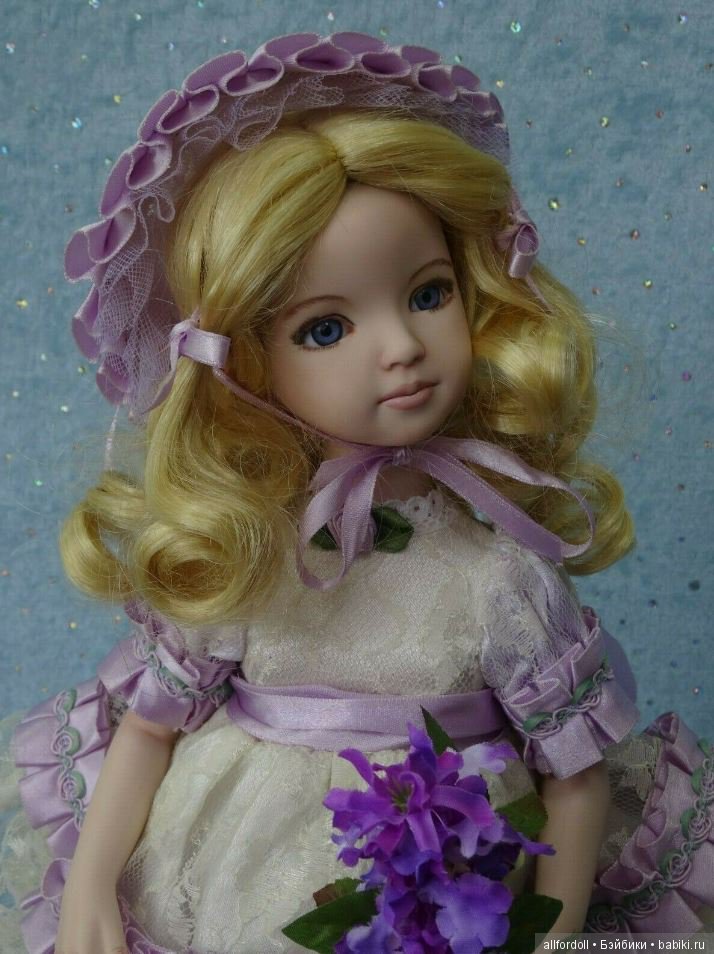 Эту девочку зовут Lilac (в переводе с английского лиловый цвет или сирень), я ее сделала полностью сама, начиная с жидкого фарфора: обжиг, чистка, роспись лица..., сделана она из молда Brittany (Британи). Молд создала Дианна Эффнер.