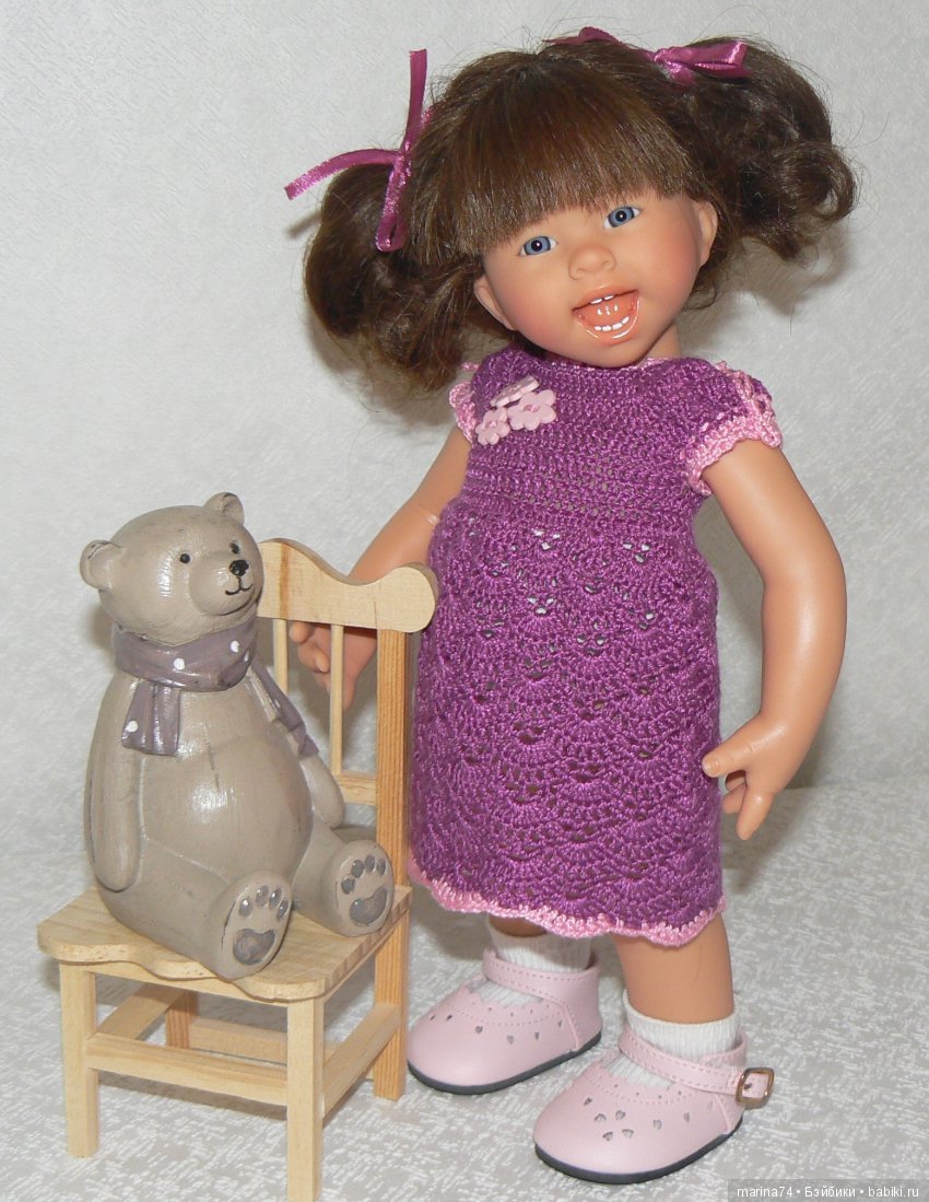 И модный льняной, летний лиловый сарафан, выгуливающий лилового цверго- медведя:)