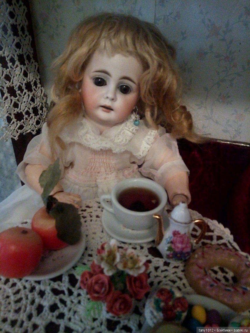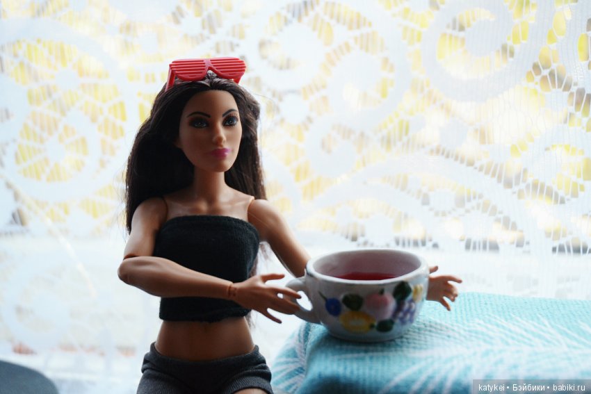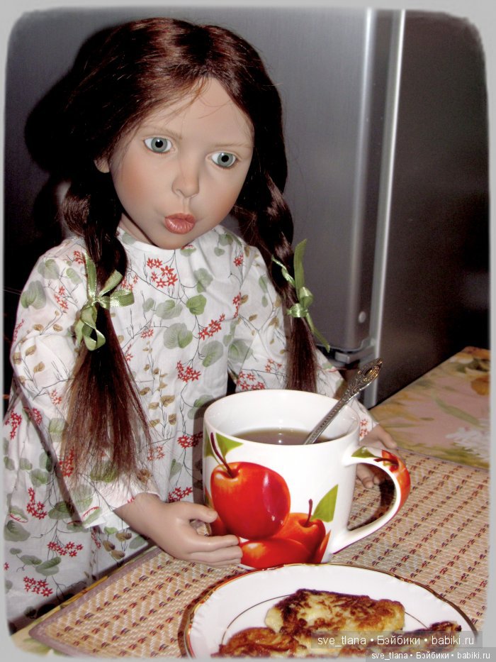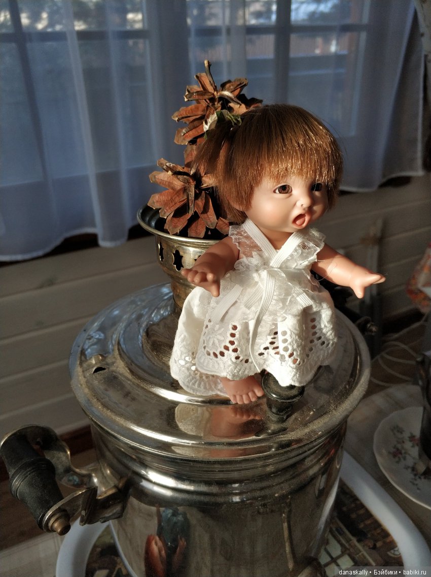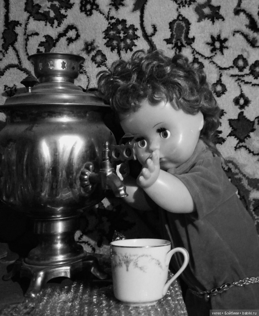 Наташа, самоварчик, и японская кружка плюс в роли фона ковра настоящий ковер сзади, всё времён СССР)