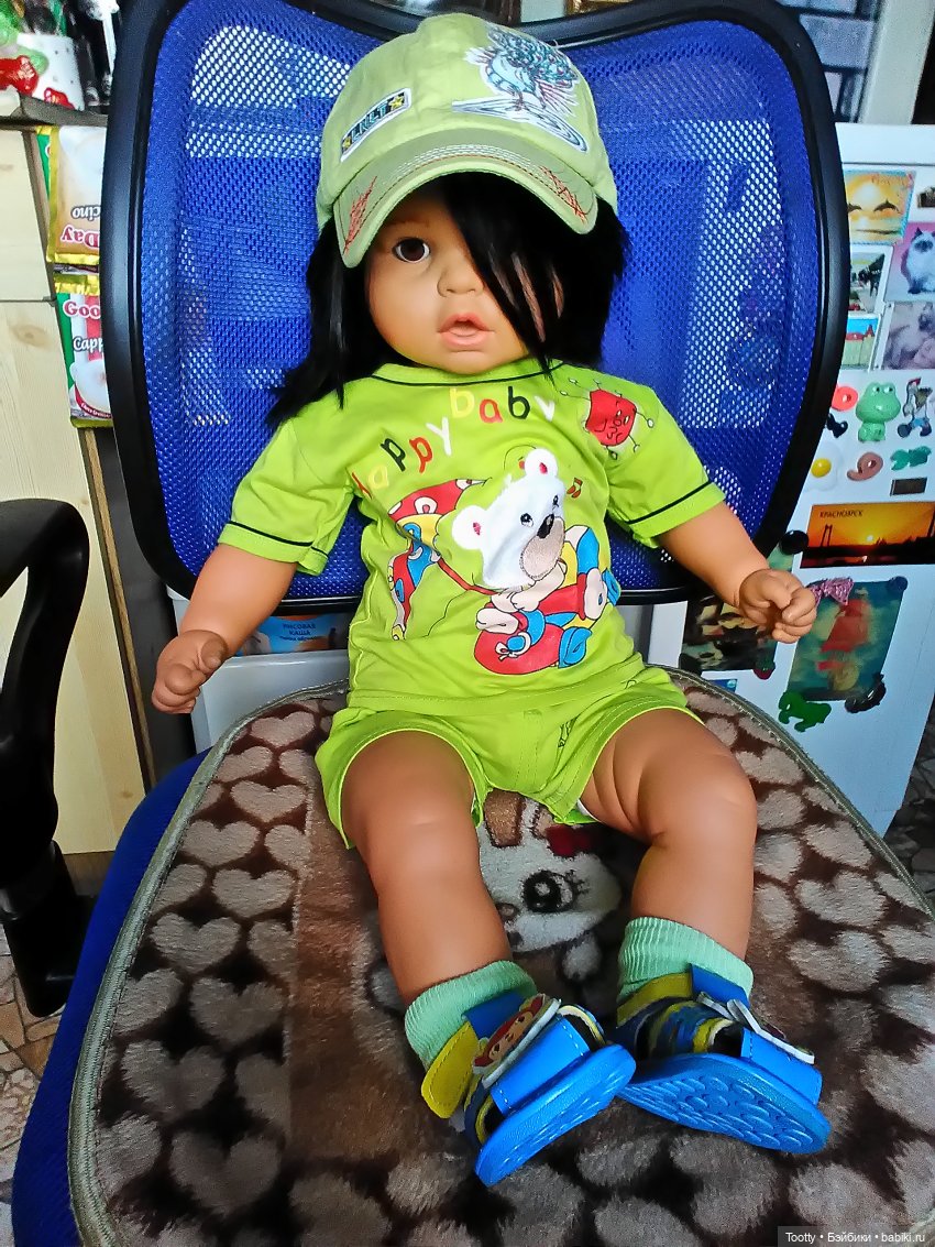Дала себе время подумать и подойти к выбору осознанно, хотя малышечка понравилась сразу. Люблю кукол-малышиков, уже 21 год я в их плену, но я не против! :) И конечно куколка напомнила мою доченьку при рождении: и темноволосая, и с темноватой кожицей, и очень сУрьезная, и с темными глазами, хотя они у нас были не карие, но все так думали. Правда к годику доча стала беленькой и светлоглазой! Волосики сейчас потемнели и стали русые.