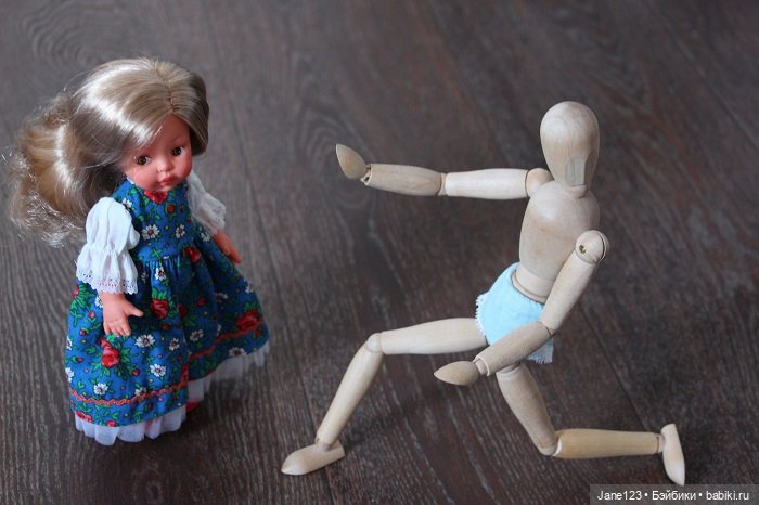Привет, Кусочек детства 13 см. ростиком.) Я знаю, ты ко мне не приедешь. Не выберут для тебя мой дом. Просто меня никогда не выбирают. Я не выигрываю в лотерею. Н побеждаю в конкурсах. Нет у меня никаких особых талантов. Не могу я написать тебе звонкий стих или песенку. Но ты такая красивая! И маленькая.) Не могла я просто пройти и не сказать тебе этого. Как бы не сложилась твоя кукольная судьба, позволь пожелать тебе счастья. Любящие руки, уютный уголок, модных нарядов. Быть может я ещё увижу тебя, хоть и на фото у новой владелицы…