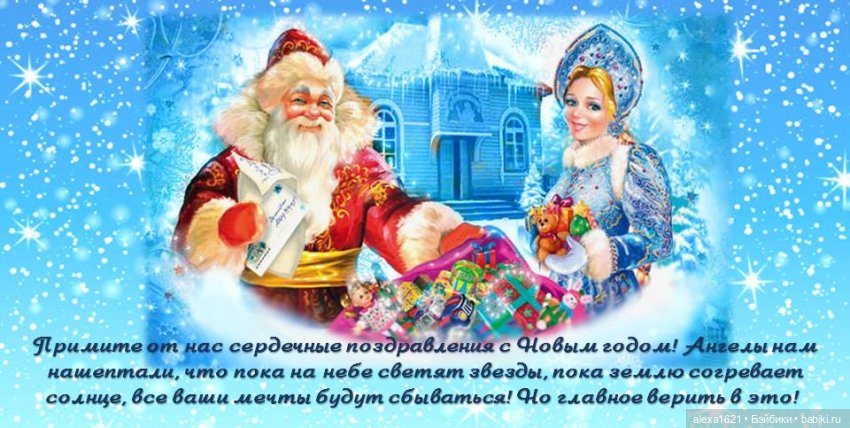 В волшебную новогоднюю ночь, под ласковый шепот метели, пускай исполнятся все сокровенные желания, жизнь наполнится радостью, весельем, все дела будут спориться, а хлопоты будут только приятными! С Новым годом!