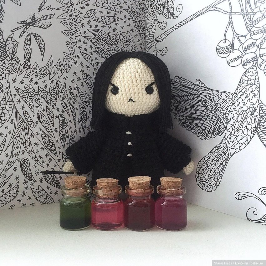 С большим опозданием, но профессор Снейп из альтернативной амигуруми-вселенной прибыл с образцами нескольких зелий 🤫