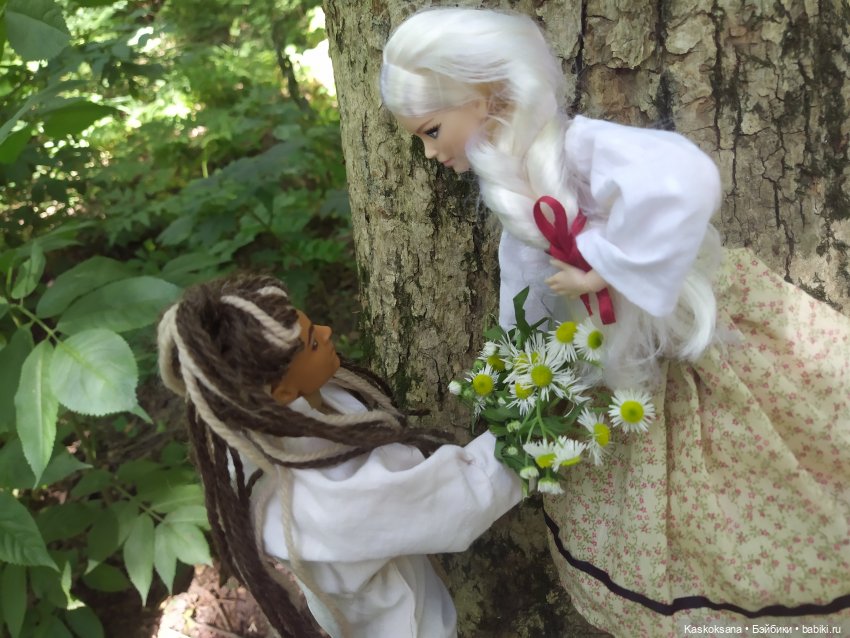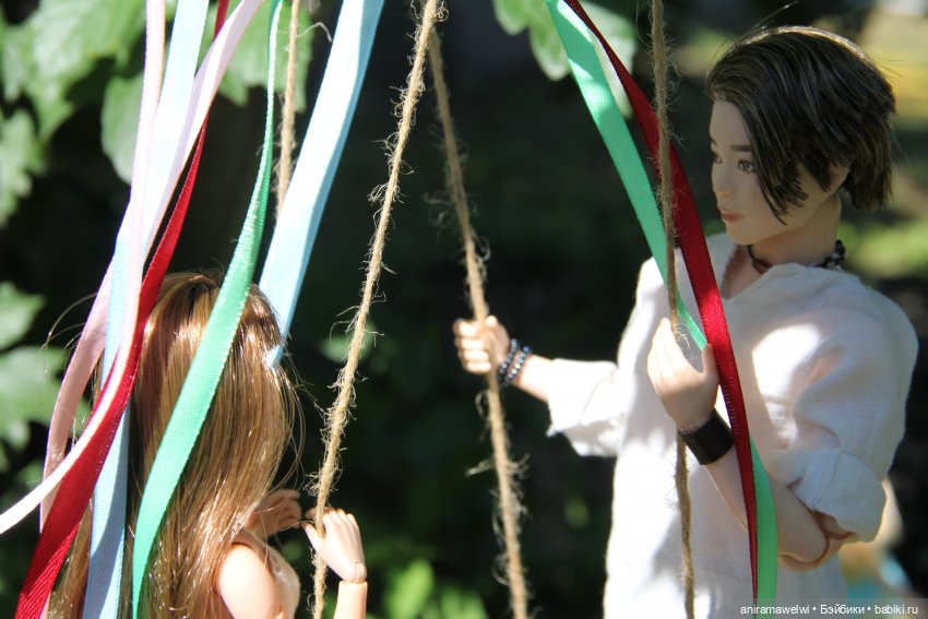 Ленты между тем начали запутываться, круг становился все меньше, и в один прекрасный момент Катарина поняла, что лента вся намоталась на столб, и бежать ей больше некуда! Любомир же, бежавший следом, тоже крепко держал свою, и они оказались лицом к лицу.