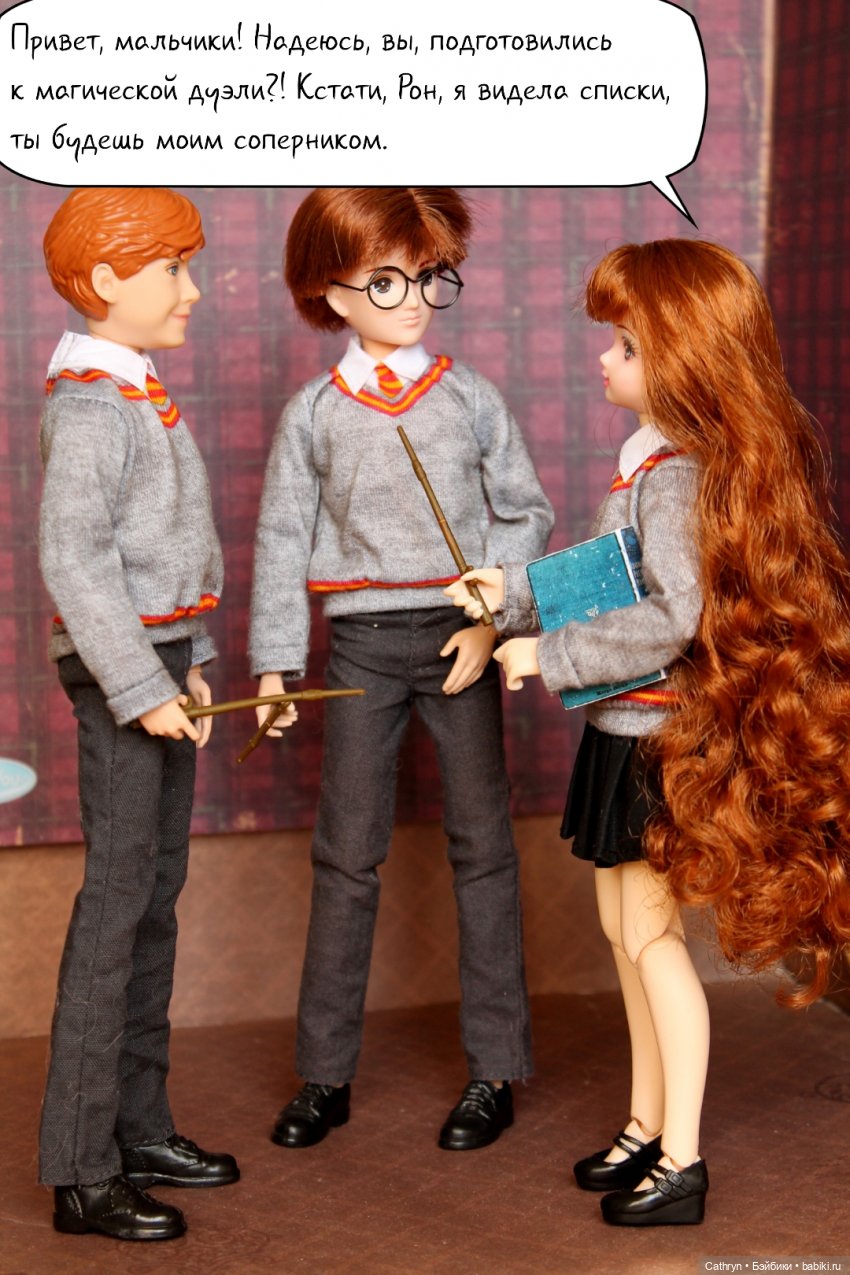 — Чего вы все ждёте? Разбейтесь на пары и приступайте к дуэли! Один из вас атакует, второй отбивает нападение. Потом меняетесь ролями. И помните, никакого насилия и непростительных заклинаний!