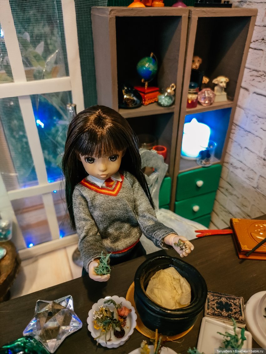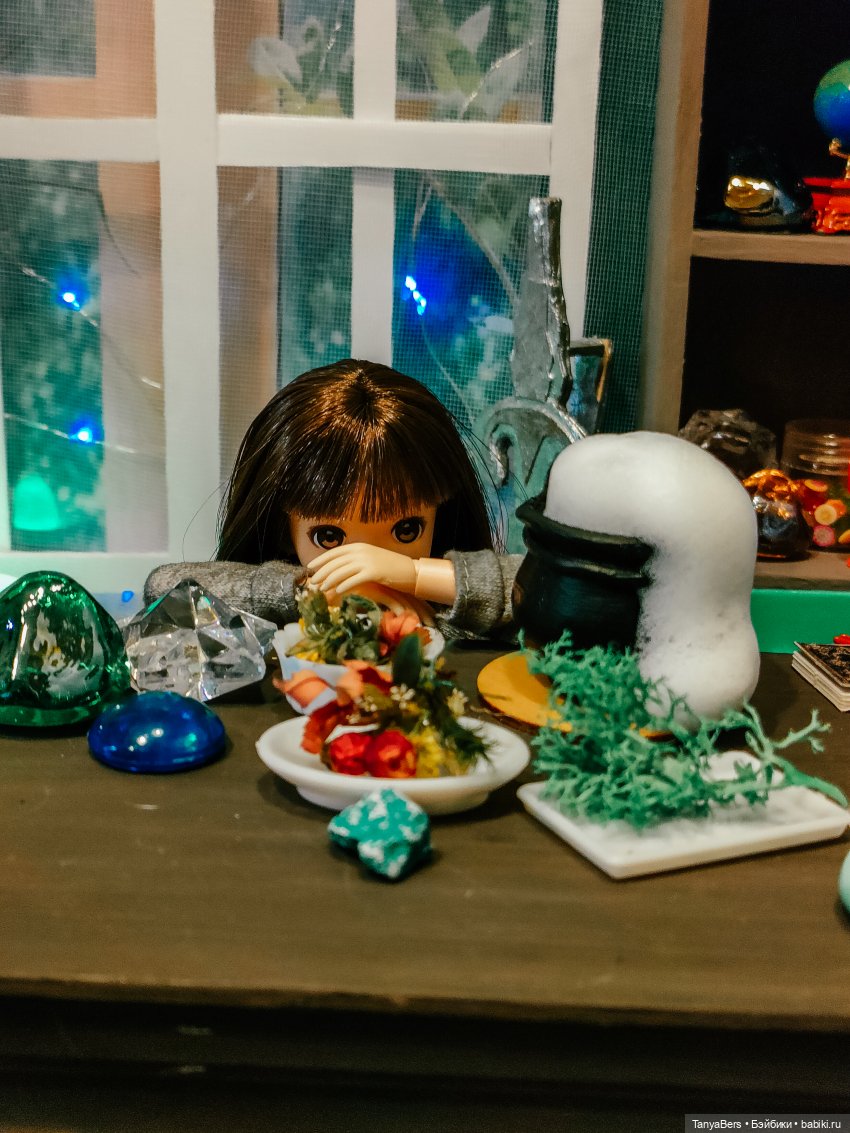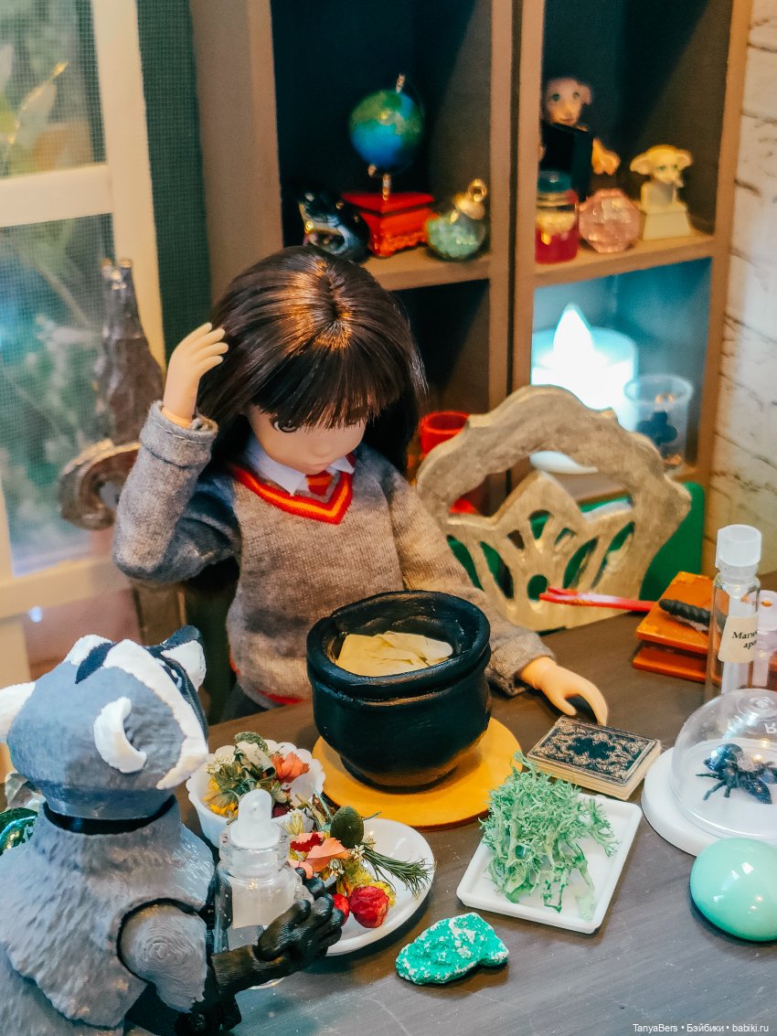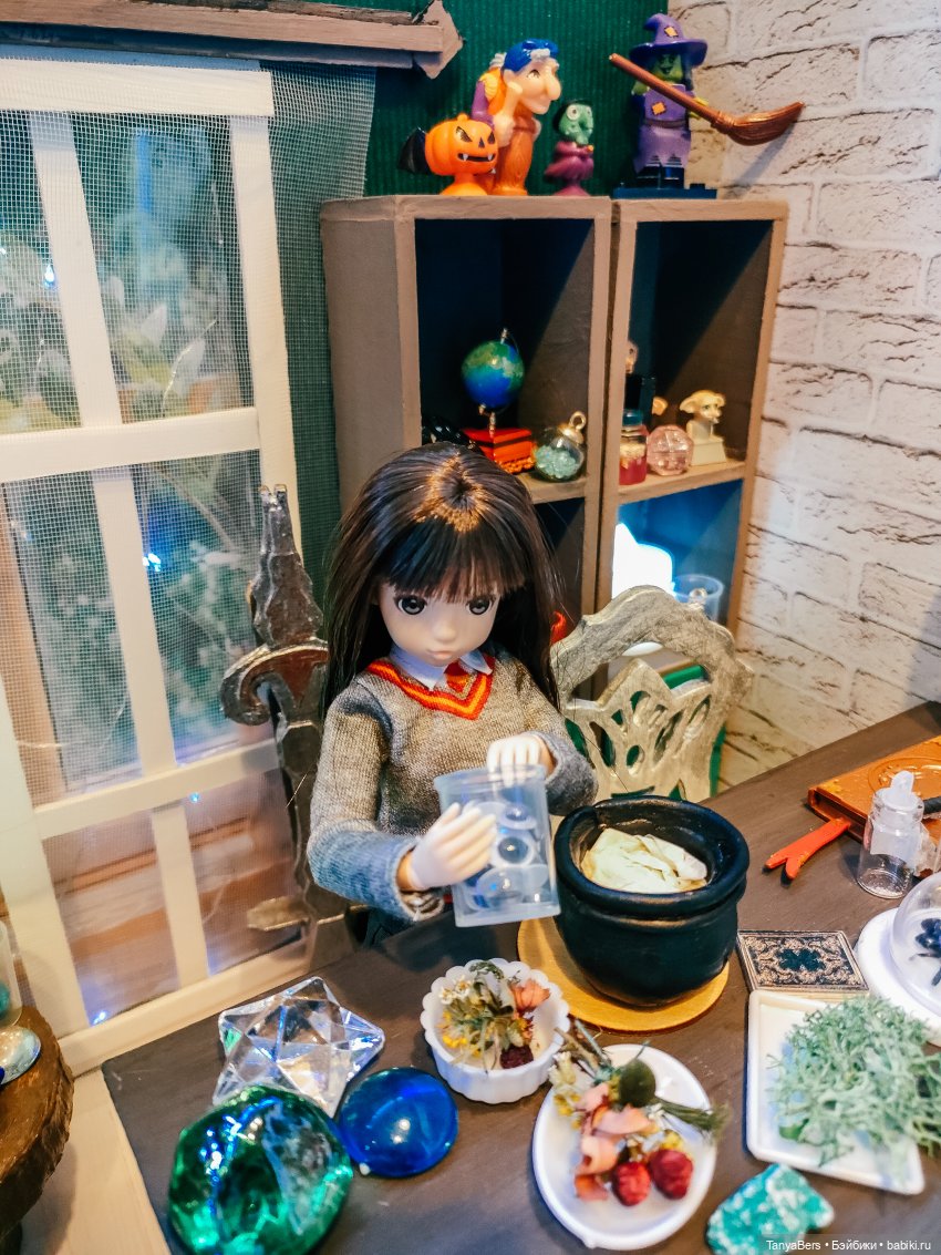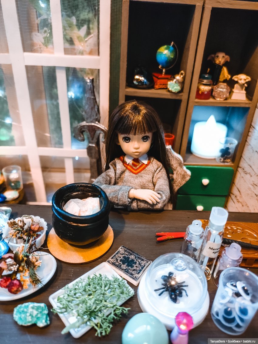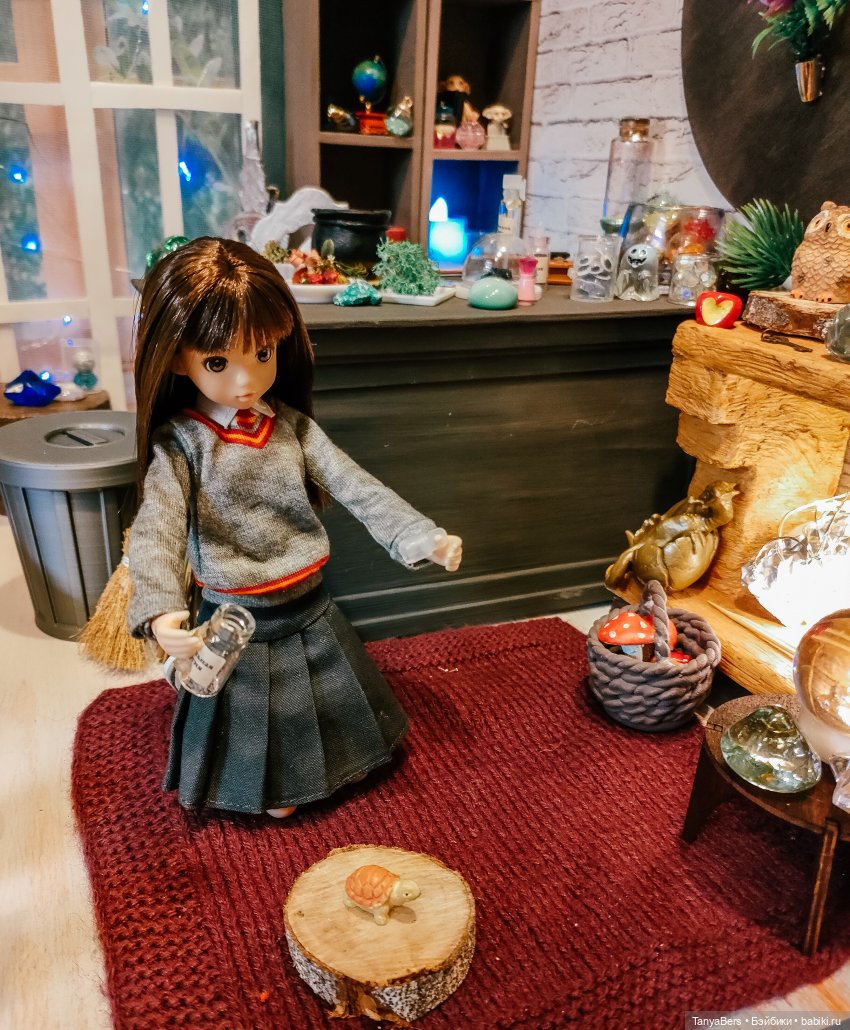Она ещё не очень определившаяся волшебница, но обстановка ей явно нравится)