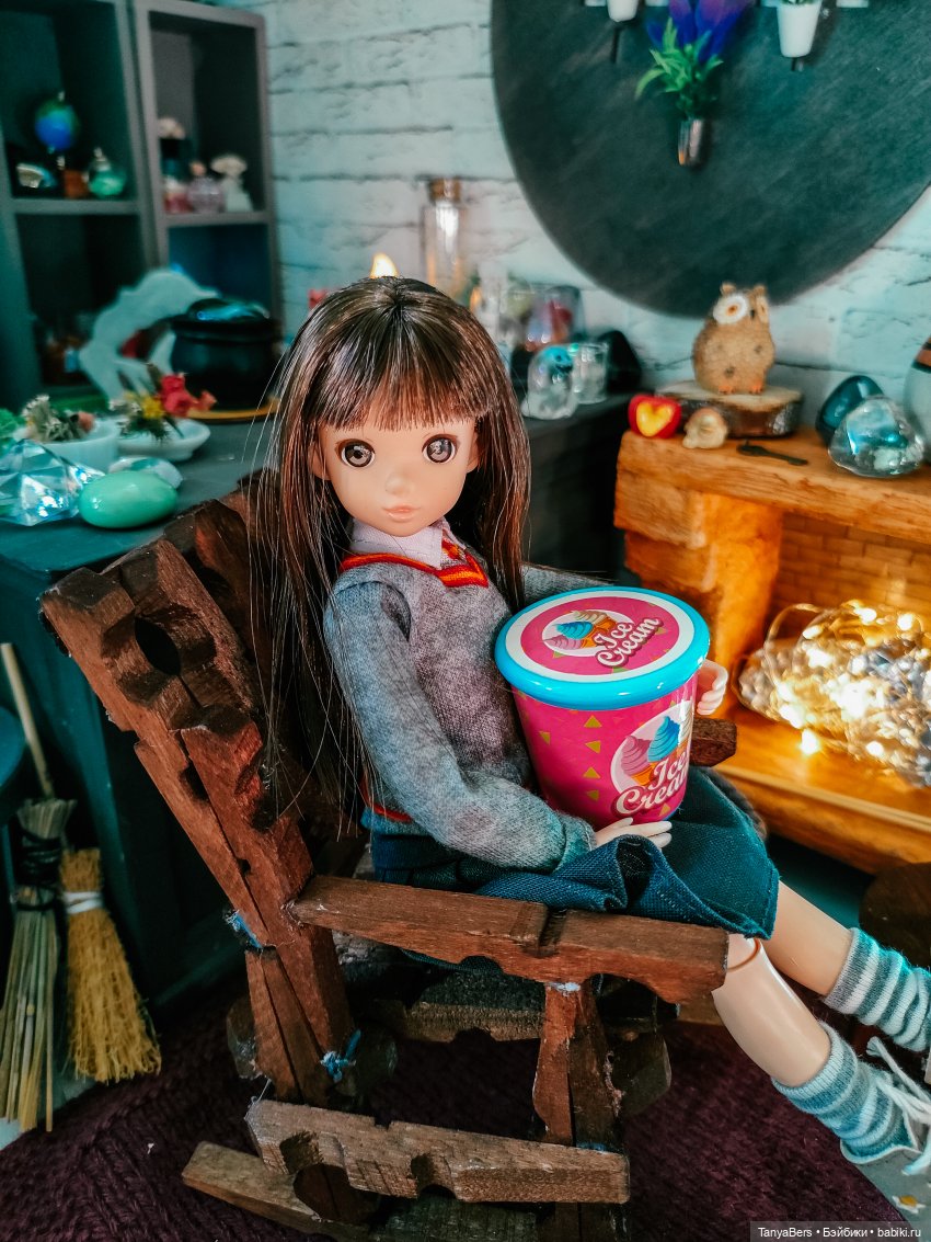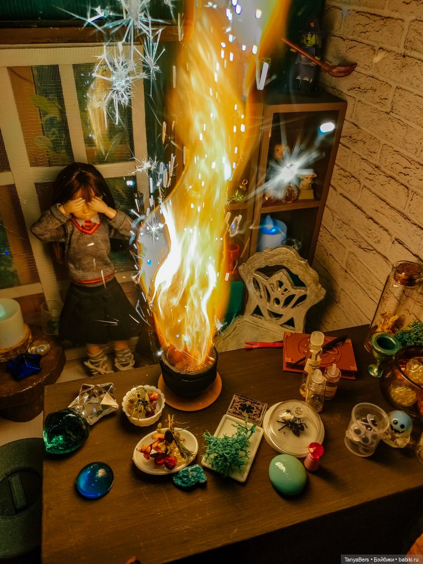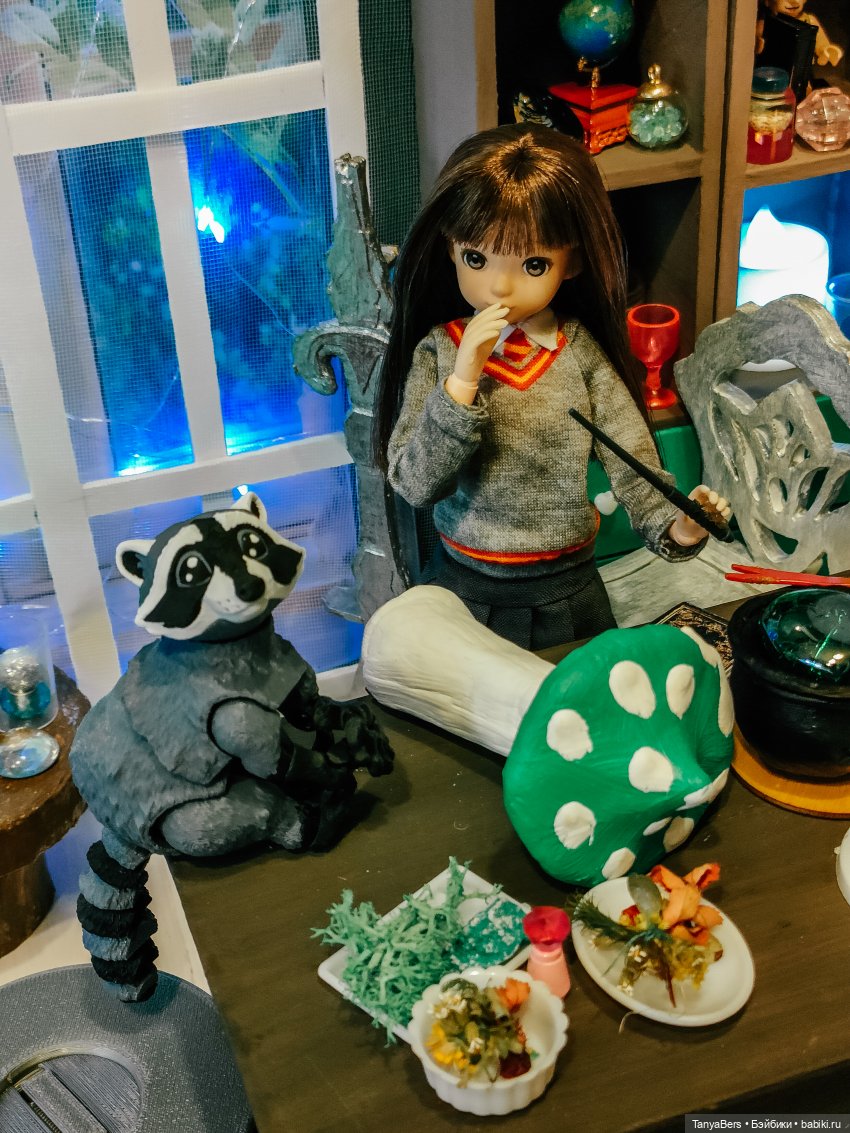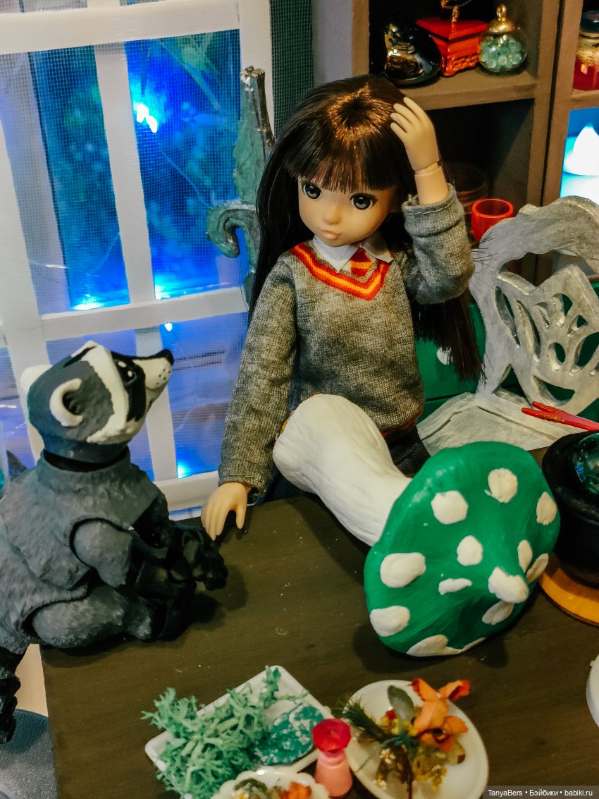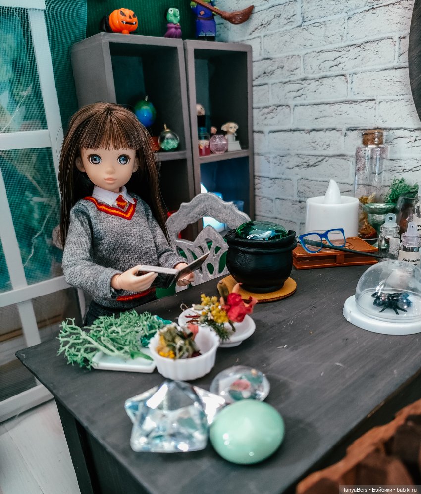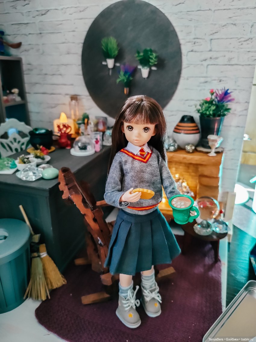 Она ещё не очень определившаяся волшебница, но обстановка ей явно нравится)