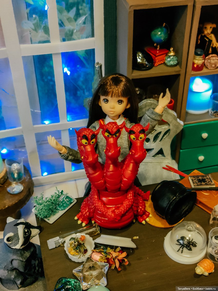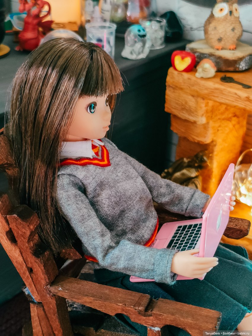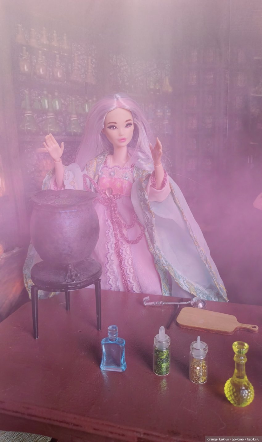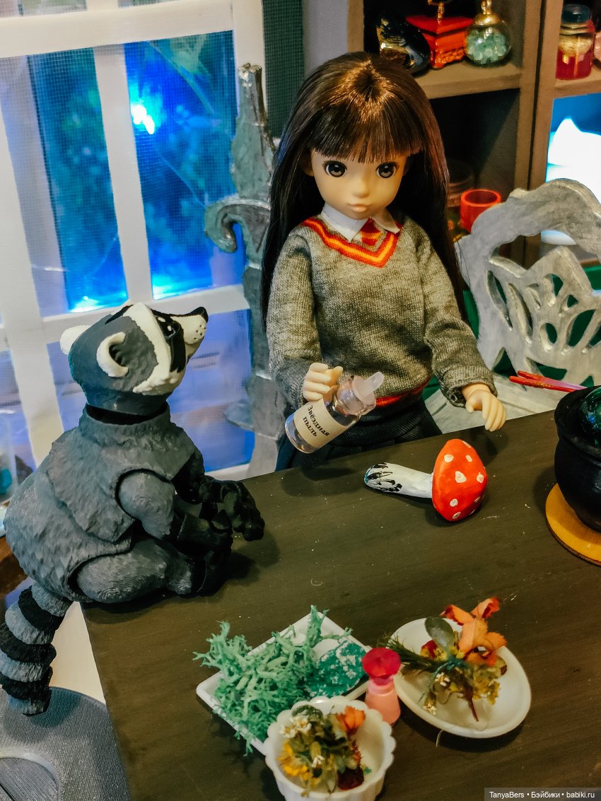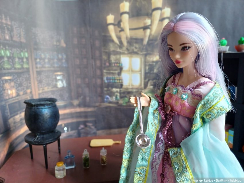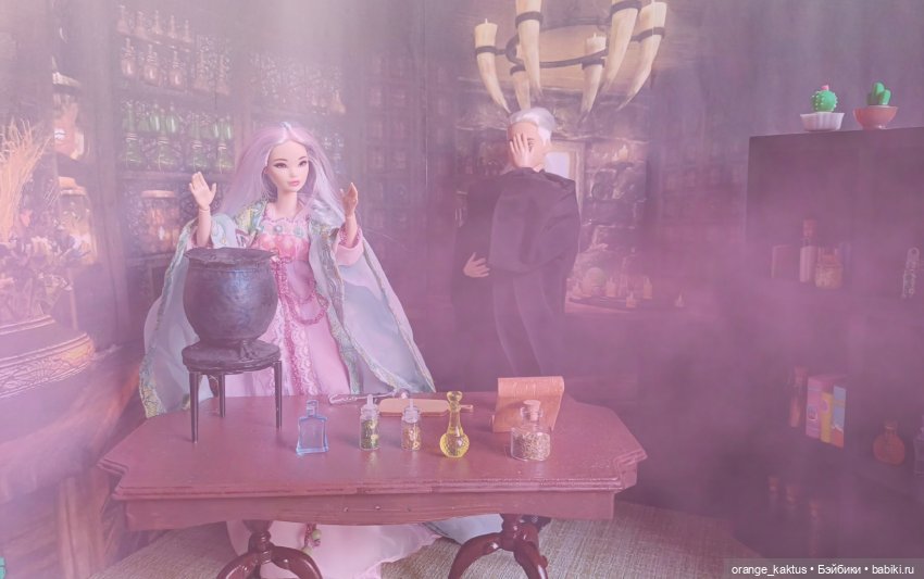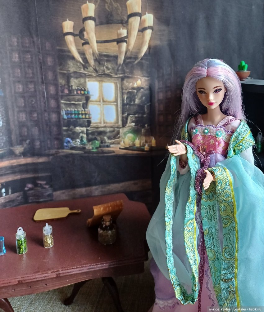 Она ещё не очень определившаяся волшебница, но обстановка ей явно нравится)