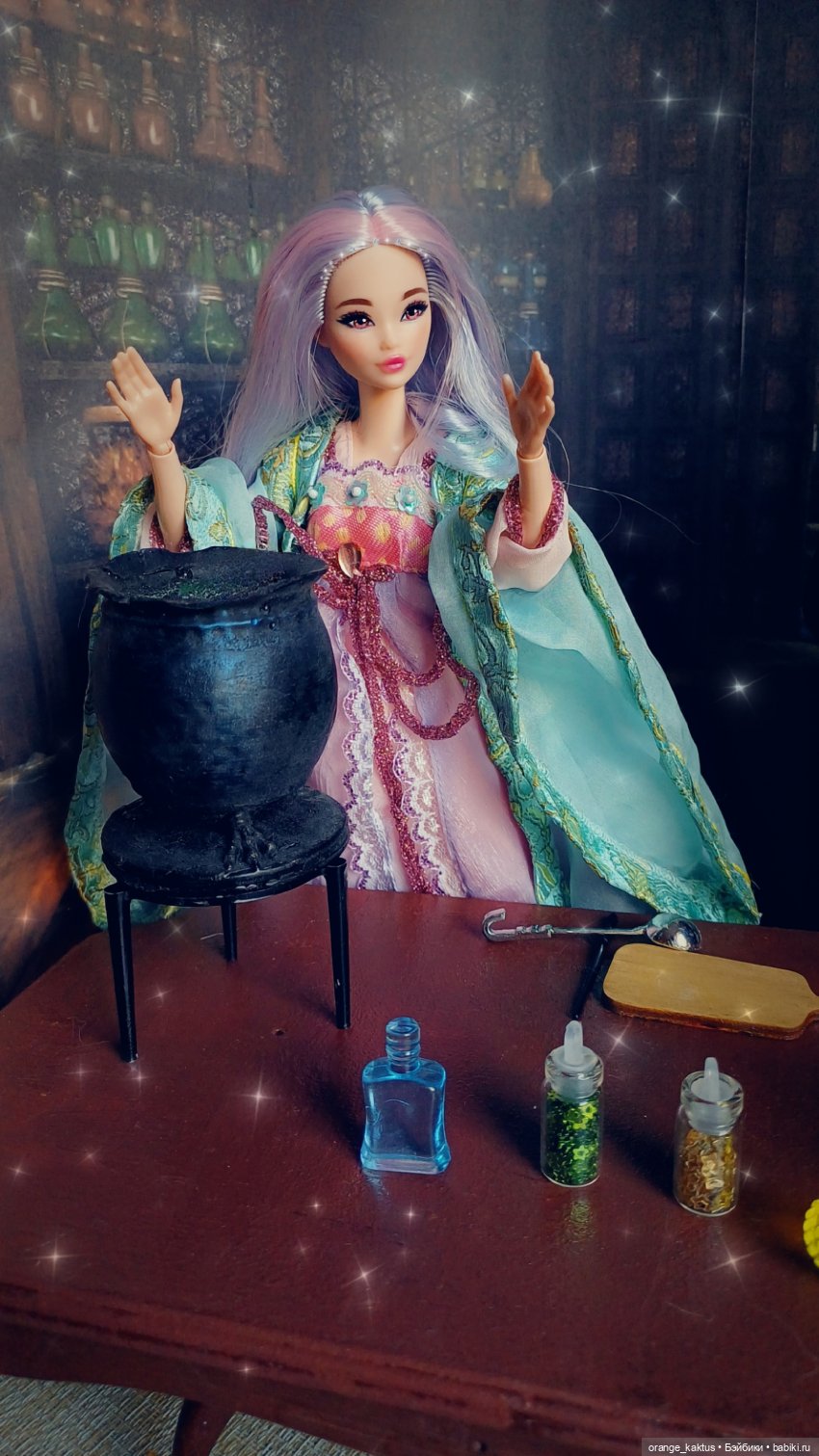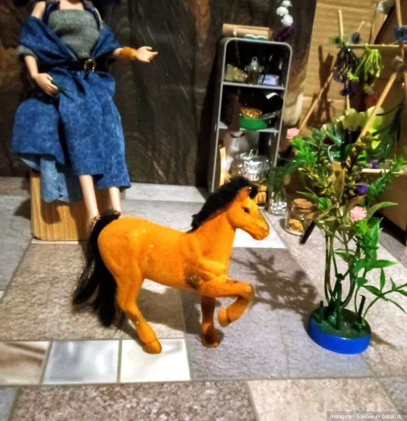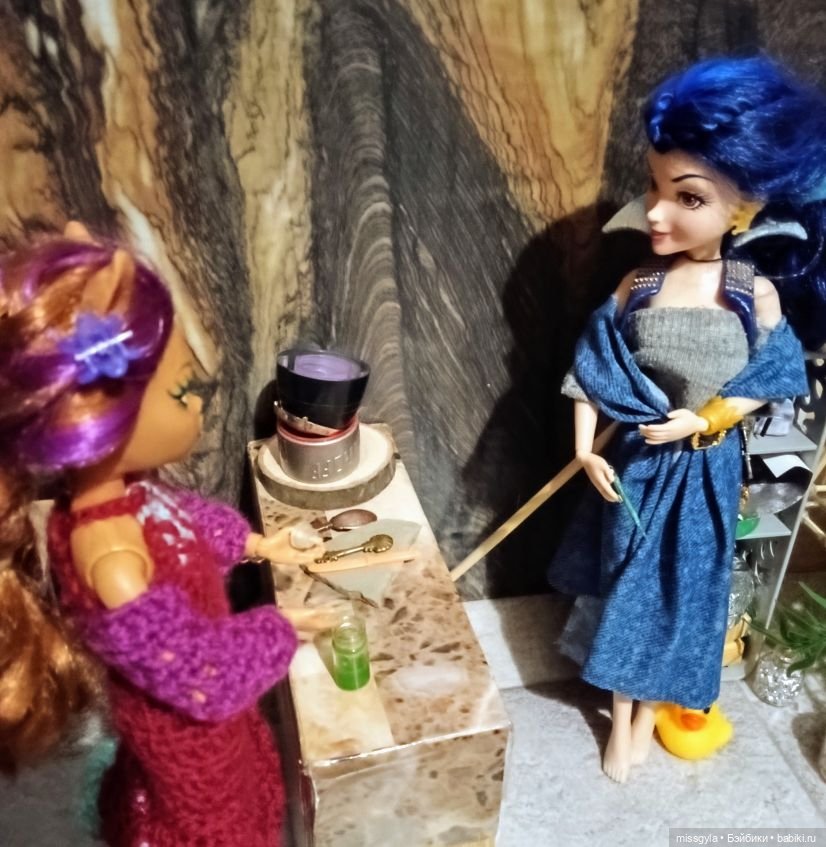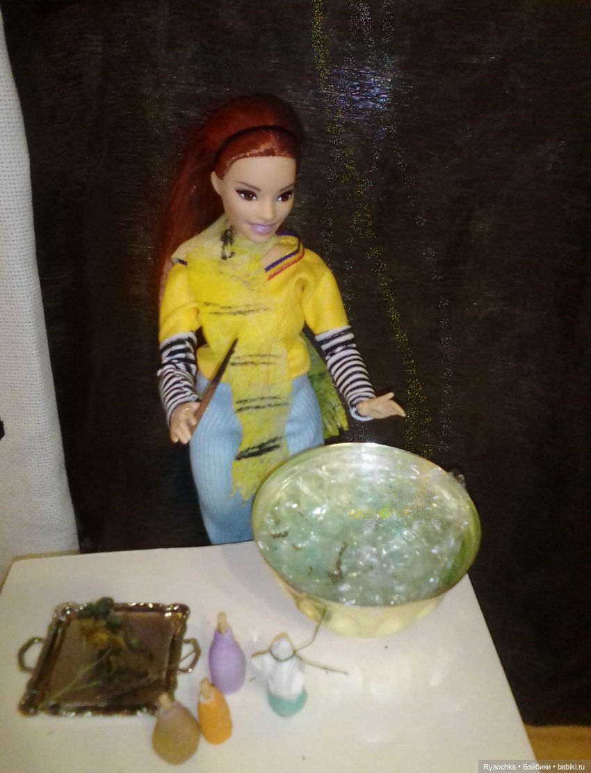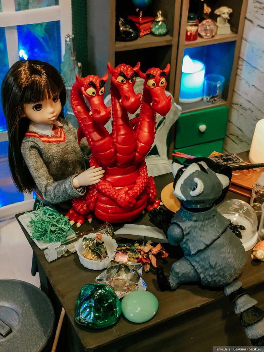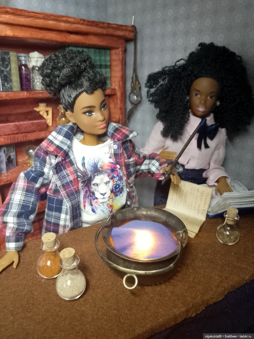 Она ещё не очень определившаяся волшебница, но обстановка ей явно нравится)