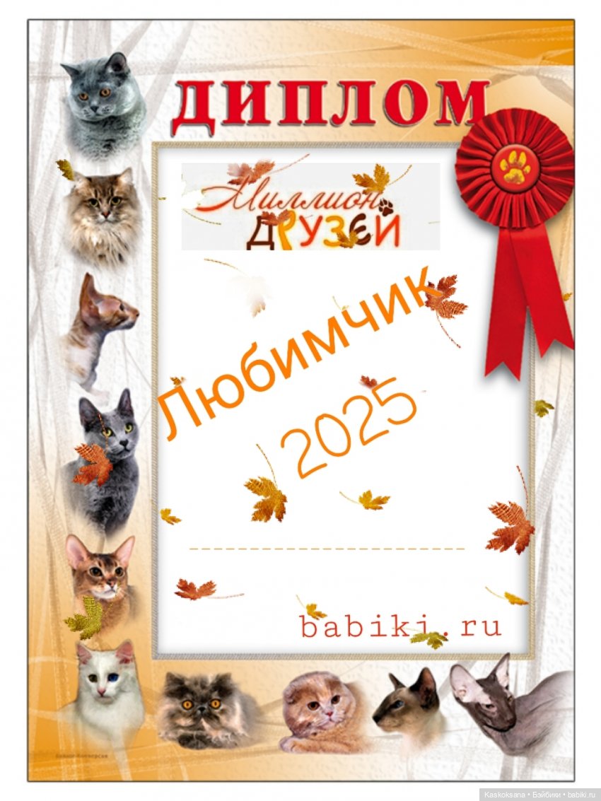 Виртуальным кубком, Дипломом «Любимец года» и сертификатом на 365 шалостей награждаются классные питомцы Бэйбиков!