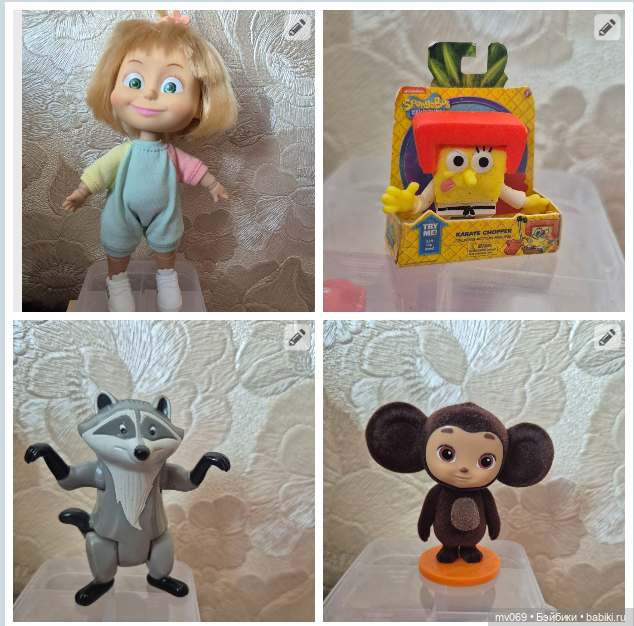 Немного моих героев. Все узнаваемы — Маша, Чебурашка, Енотик из Покахонтас и Спанч Боб. Хотя, конечно, некоторые из мультфильмов…