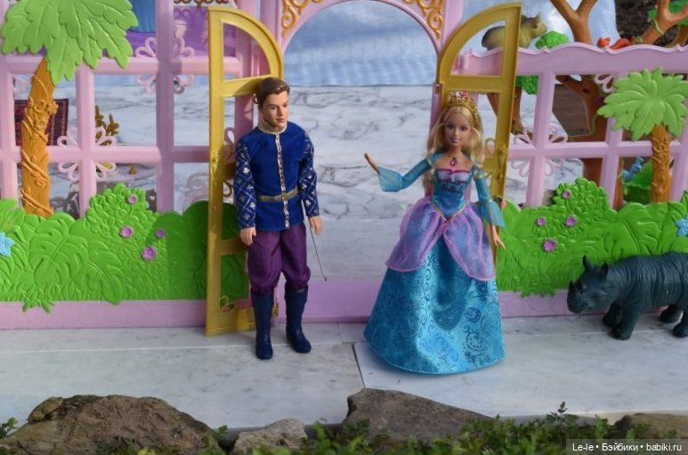 В гости персонажи, которые так и живут у меня в своих экранных образах: принцесса Розелла и принц Антонио из м/ф «Барби — принцесса острова». У них даже свой дворец есть (тоже из этого м/ф), они принимали в нём гостей на Весеннем балу: