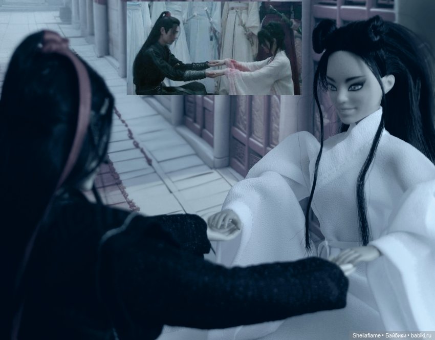 И отсняла сценку, так называемый ритуал Сопереживания (кадр из фильма вставила как референс):