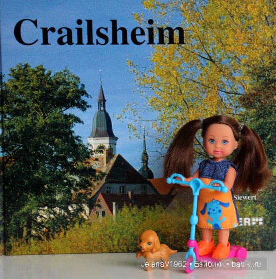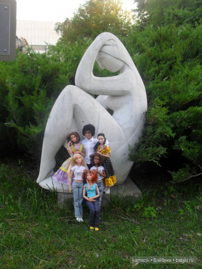 А мои куклы живут сейчас в Подмосковье. Анжелина-дама городская, вот и приходится ей рассекать на каблуках и с айфоном по дорожке около дома. Скучает она, в общем… В город хочет…