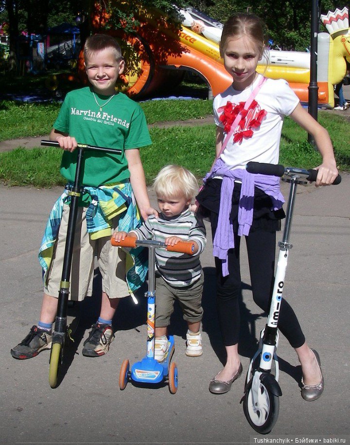 Но у нас ни старшая, на самокате не хочет, ни младшая. Велик + беговал + мама высунув язык догоняет )).