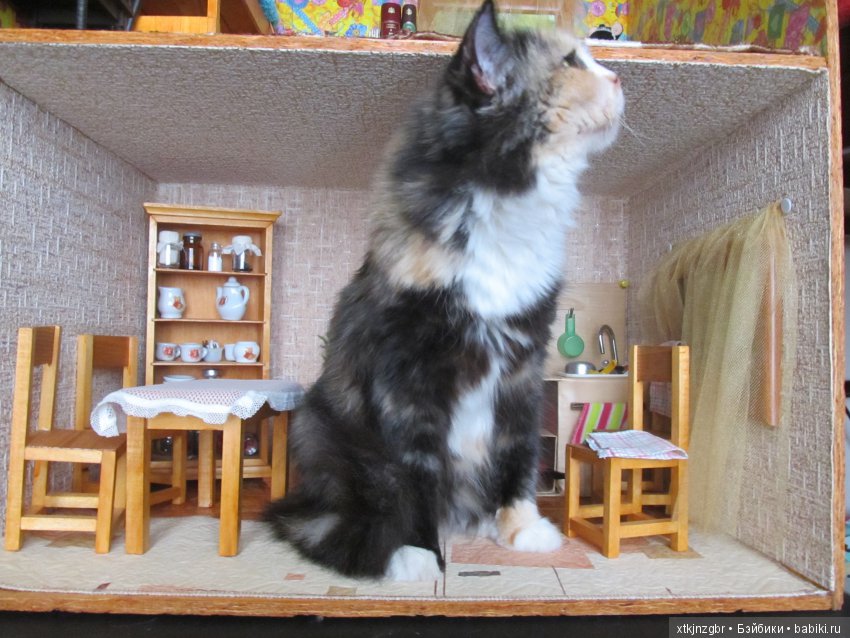 Зверя зовут Дуся. Она любит поваляться на кухне, а вот бабушка не любит, когда Дуся валяется на кухне, потому что она занимает почти всю кухню и там тогда ни пройти, ни проехать