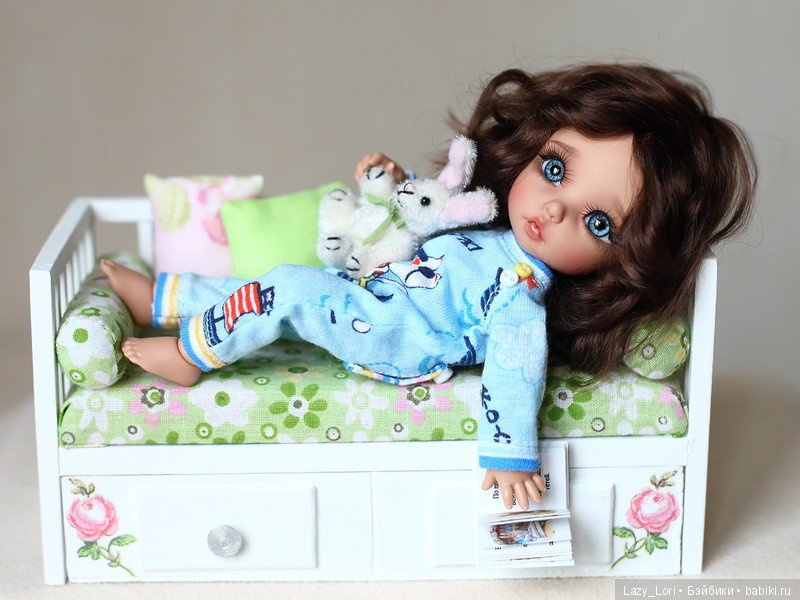 Роми, которую невозможно со дня рождения вытащить из ее «платья принцессы»(хорошо хоть корону сняла), играет с новой куклой.У куклы есть кроватка, соска и погремушка, что еще ребенку нужно для счастья? Би и Малыш обиженно сопят рядом.Они искренне не понимают как их можно было променять на какую-то куклу, собаки же лучше?