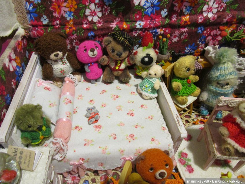 Котька со своим мишкой (тоже от Екатерины) в гости. Мы пока только обживаемся игрушками)