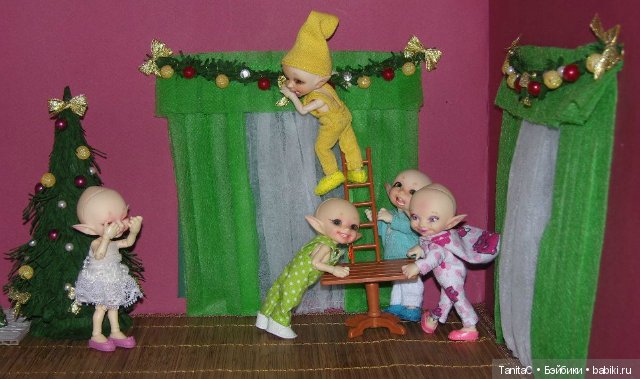 Маленький народ ёлку украшали и дом). Светлячок правда не много помог и сотворил волшебство!!)). Он не когда не использовал палочку среди своих, но сейчас ему захотелось порадовать и все получилось!!!
