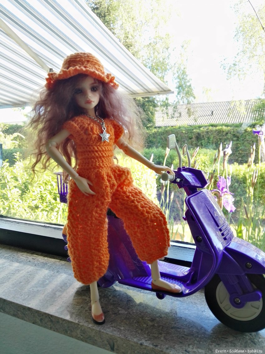 У Миленки Эсме был парик с волнистыми волосами с очень приятным оттенком. Теперь она с прямыми волосами. А вот рыжей стала по чистой случайности. Должна была выбрать Reddish brown, но делая заказ заполночь и второпях, кликнула не на тот номер. Получила в итоге Double Red. Раньше рыжие куклы нравились меньше всего, но сейчас, глядя на Миленку в ярко-рыжем парике, я поменяла мнение. Чудо как хороша :)