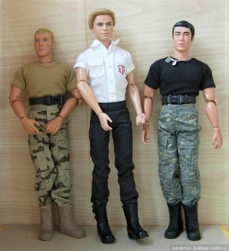 У меня только один Кен (Техасский университет). У солдат другой пластик, более крупные кисти, молдированные прически, но подвижность больше.