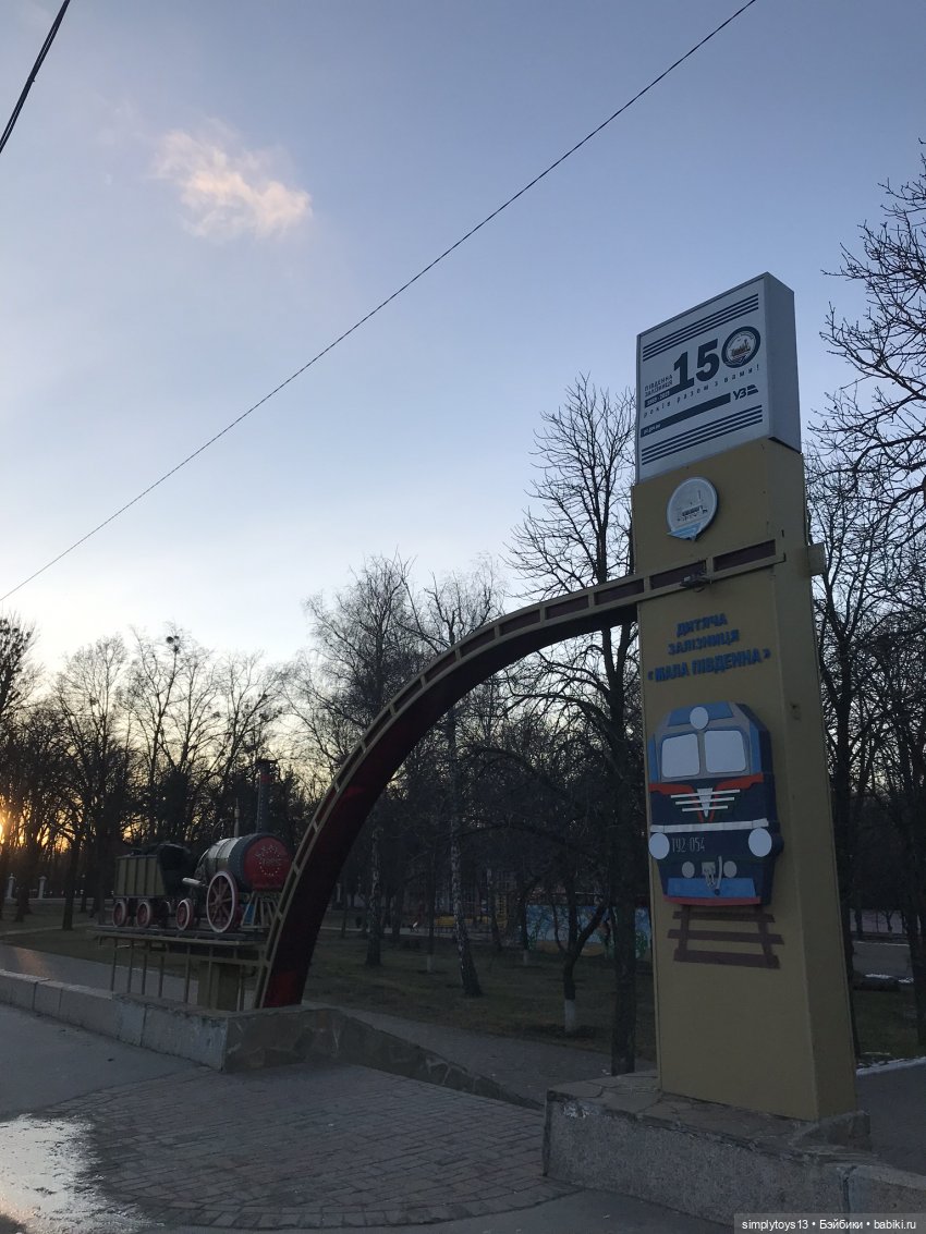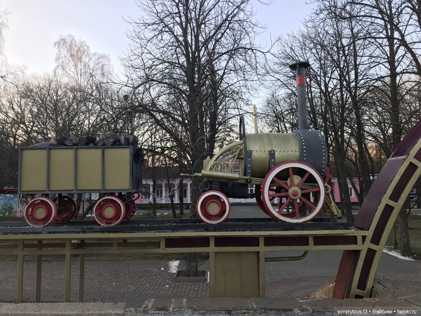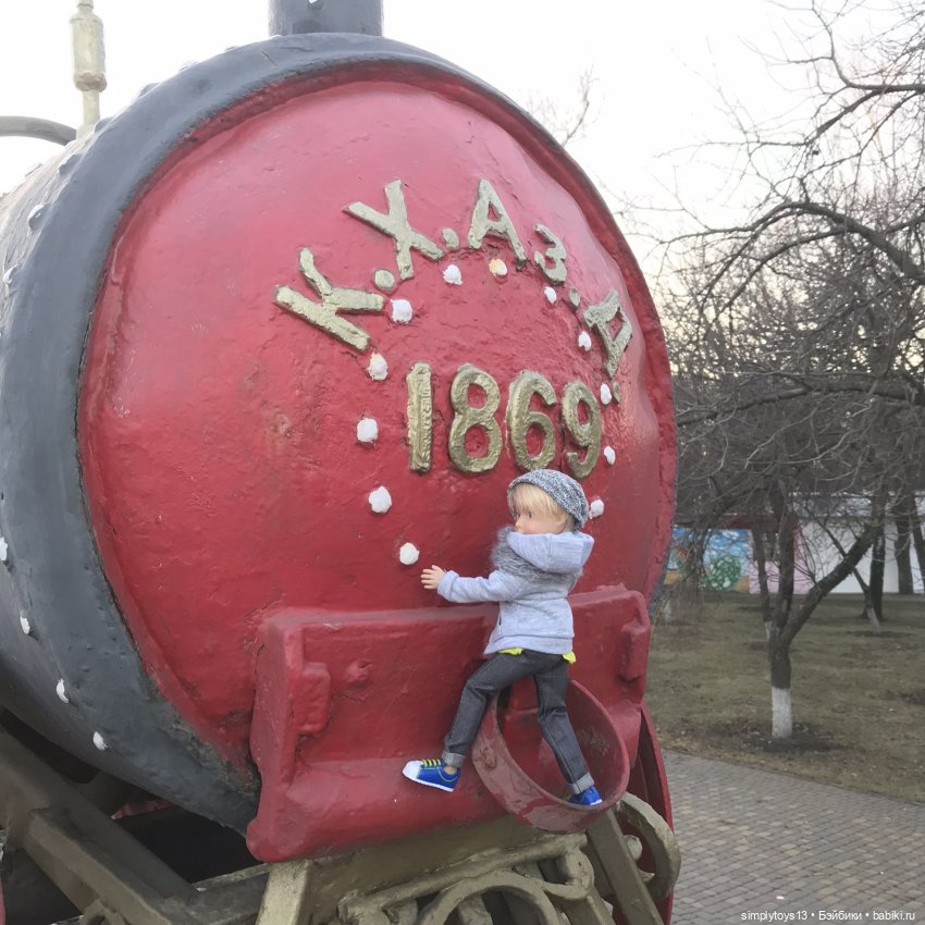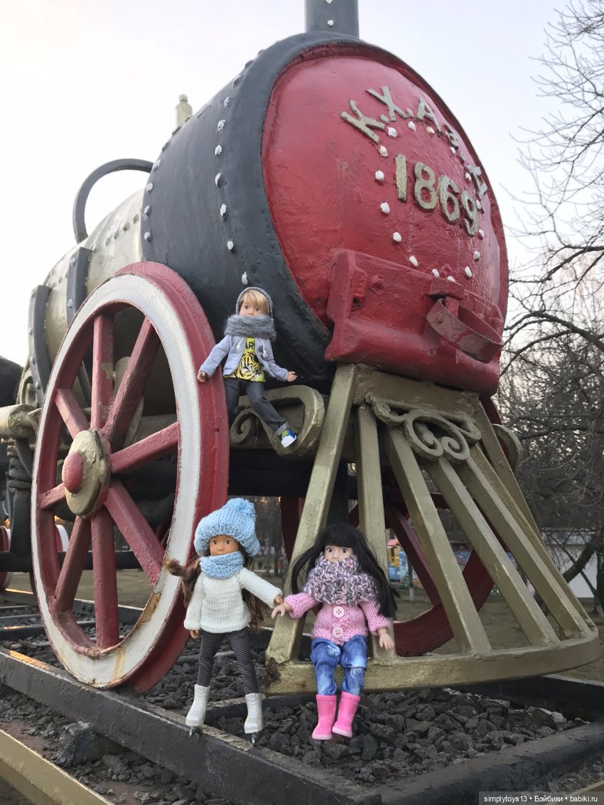 А вот при входе поставили паровоз на рельсах, как раз для такого формата кукол-самое оно.)